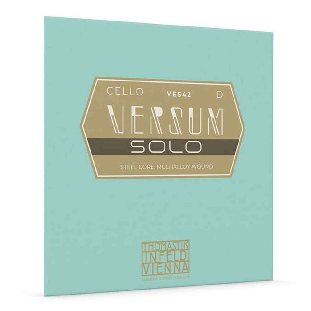 Thomastik Infeld THVES-42 cello string D-2 4/4 medium, carbon steel, multialloy wound The VERSUM SOLO edition offers unprecedented possibilities of combining color, sound and texture. These strings were designed for profound power, ideal response and optimal projection - and they deliver! With effortless virtuosity they are poised to enhance the performances of even the most discerning players and cut through any acoustical situation.