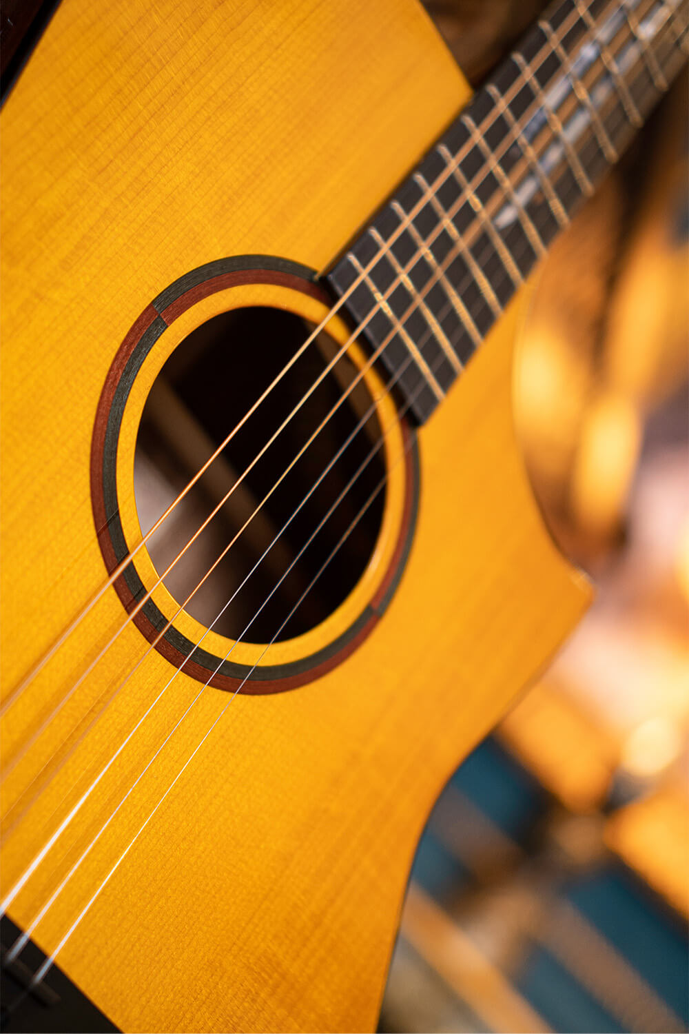Met een comfortabele LUXE-halsvorm, versterkt met walnoot en afgewerkt in satijn, speelt deze gitaar licht en snel. De ebbenhouten toets en brug bieden extra sustain en helderheid. De Fishman Flex Blend pickup levert een natuurlijk versterkt geluid met handige bediening op de zijkant. Details zoals de custom houten rozet, mother-of-pearl inlays en sonisch verbeterde UV-glansafwerking maken het instrument visueel en technisch compleet. Inclusief luxe hardshell koffer voor veilig transport.