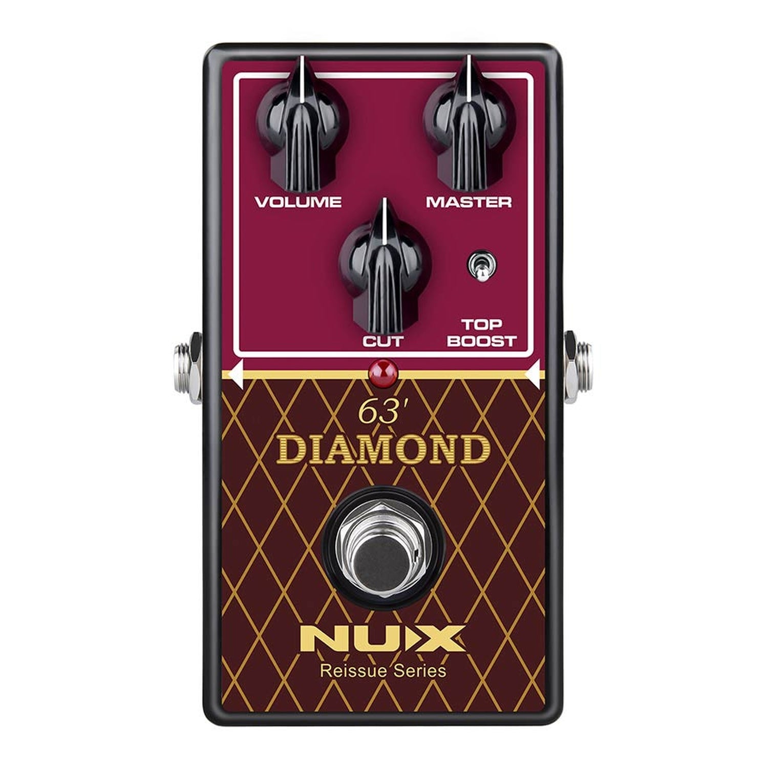 The NUX NRO-6 63' Diamond is an analog overdrive pedal from the popular Reissue Series, inspired by the iconic Vox AC-30 tube amplifier. The AC-30 has been an essential part of pop music history for over 60 years, driving the guitar sounds of legendary bands like the Beatles, Queen, and U2. This pedal captures not only the punchy, crunchy sound of the Vox AC-30, but also its distinctive look and control options.