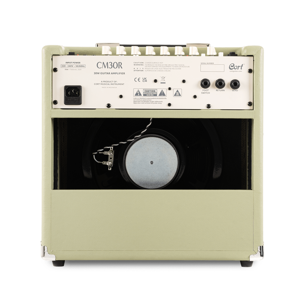 The Cort CM30-RPG is a versatile 30W guitar amplifier with a striking pastel green finish and a vintage design . This model is perfect for guitarists who want not only powerful sound but also an amplifier with a unique look.
