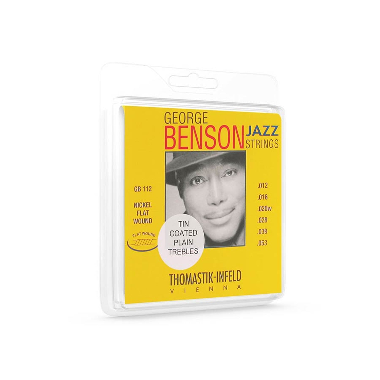 Thomastik Infeld THGB-112T electric string set, nickel flatwound, 012-016-020-028-039-053 tin-plated trebles The dynamics of GEORGE BENSON JAZZ strings by THOMASTIK-INFELD were designed-in from the beginning. Like true intonation. Excellent sustain. Superior durability. And of course, a feel you simply have to experience. Just ask George. They're designed to his specs.