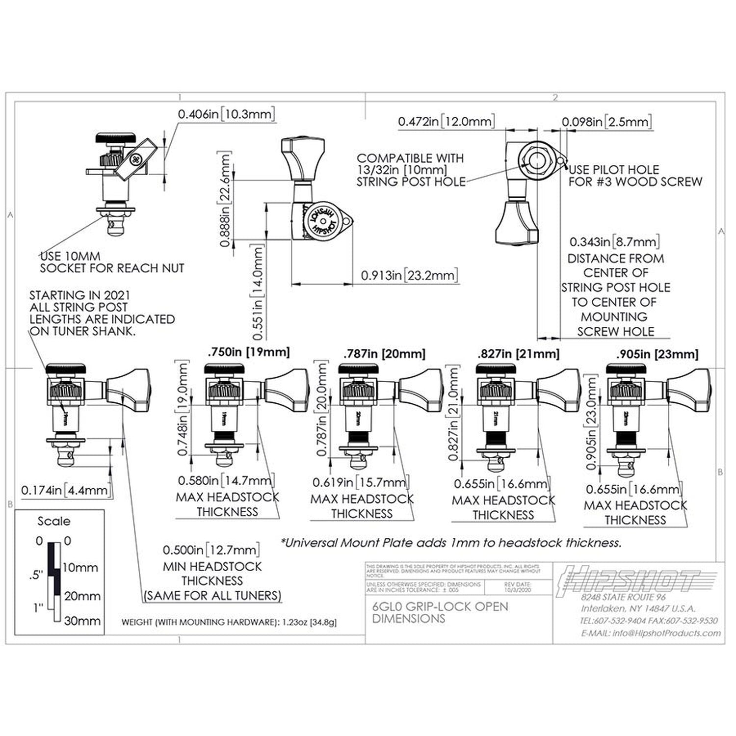- Standard tuners fit guitars with 13/32" [10mm] headstock holes.