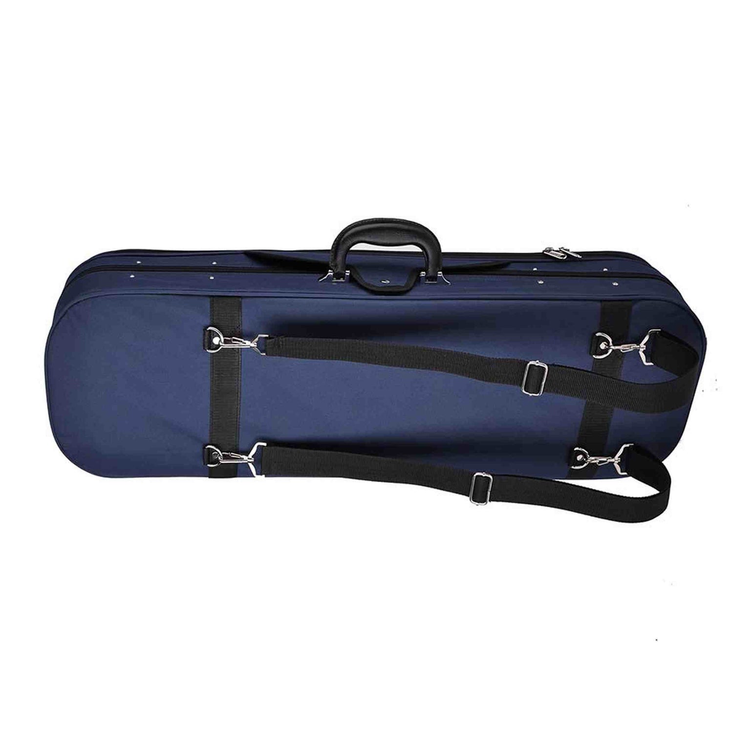 De binnenzijde is afgewerkt met blauw pluche dat aansluit bij de buitenkleur en voorzien van twee strijkstokhouders. Het brede accessoirevak biedt ruimte voor toebehoren en het muziekcompartiment is geschikt voor bladmuziek. De YKK ritssluiting sluit soepel en betrouwbaar. Met twee rugriemen draag je de koffer comfortabel op de rug.