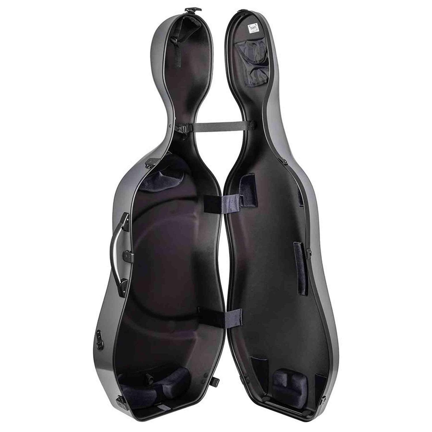 The internal polyurethane foam skeleton provides extra stability. Inside, you'll find two bow holders and straps for the bow and neck. An elastic band secures the endpin during transport. The case closes with five BAM latches with a key and creates an airtight seal. You can carry it with two neoprene shoulder straps with safety hooks or by the comfortable bi-material side handle.