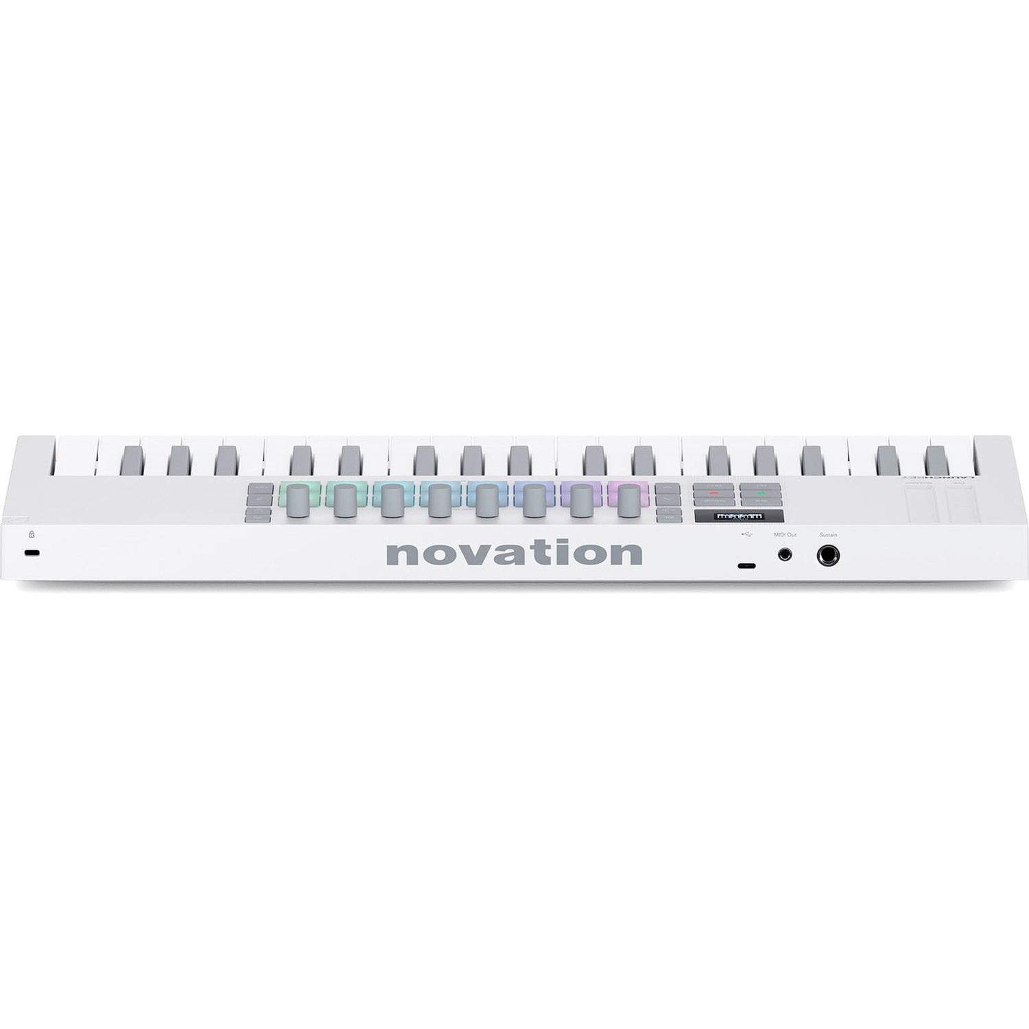 The Novation Launchkey Mini 37 MK4 WH is a compact and versatile USB MIDI controller with 37 velocity-sensitive keys and a streamlined design in a stylish white finish. This keyboard is designed for direct integration with Ableton Live , but also works perfectly with other DAWs. The 16 FSR drum pads with polyphonic aftertouch , 8 endless rotary knobs , and dedicated transport and DAW function buttons give you complete creative control over your music production. Additionally, Scale Mode , Chord Mode , and a powerful arpeggiator are included to easily develop musical ideas, even without extensive music theory knowledge.