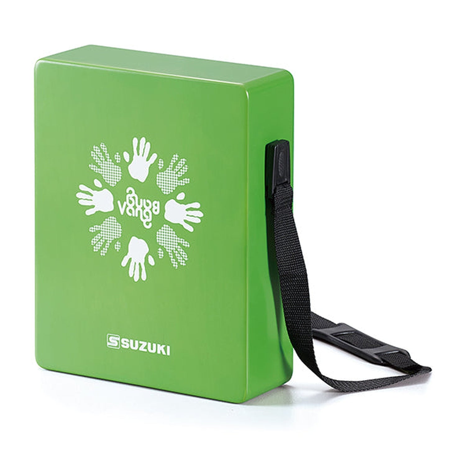 The Suzuki BangVang is a portable cajon—actually a kind of travel cajon. The interior is divided into two compartments, giving you two pitches, similar to bongo cajons. Both the top, bottom, and sides are playable. Thanks to the included carrying strap, you can hang it around your neck and play it while standing or even walking. Dimensions: 22.8 x 8.2 x 29.1 cm. Weight: 737 grams. The included carrying strap has a total length of 98 cm. The BangVang is made of plywood.