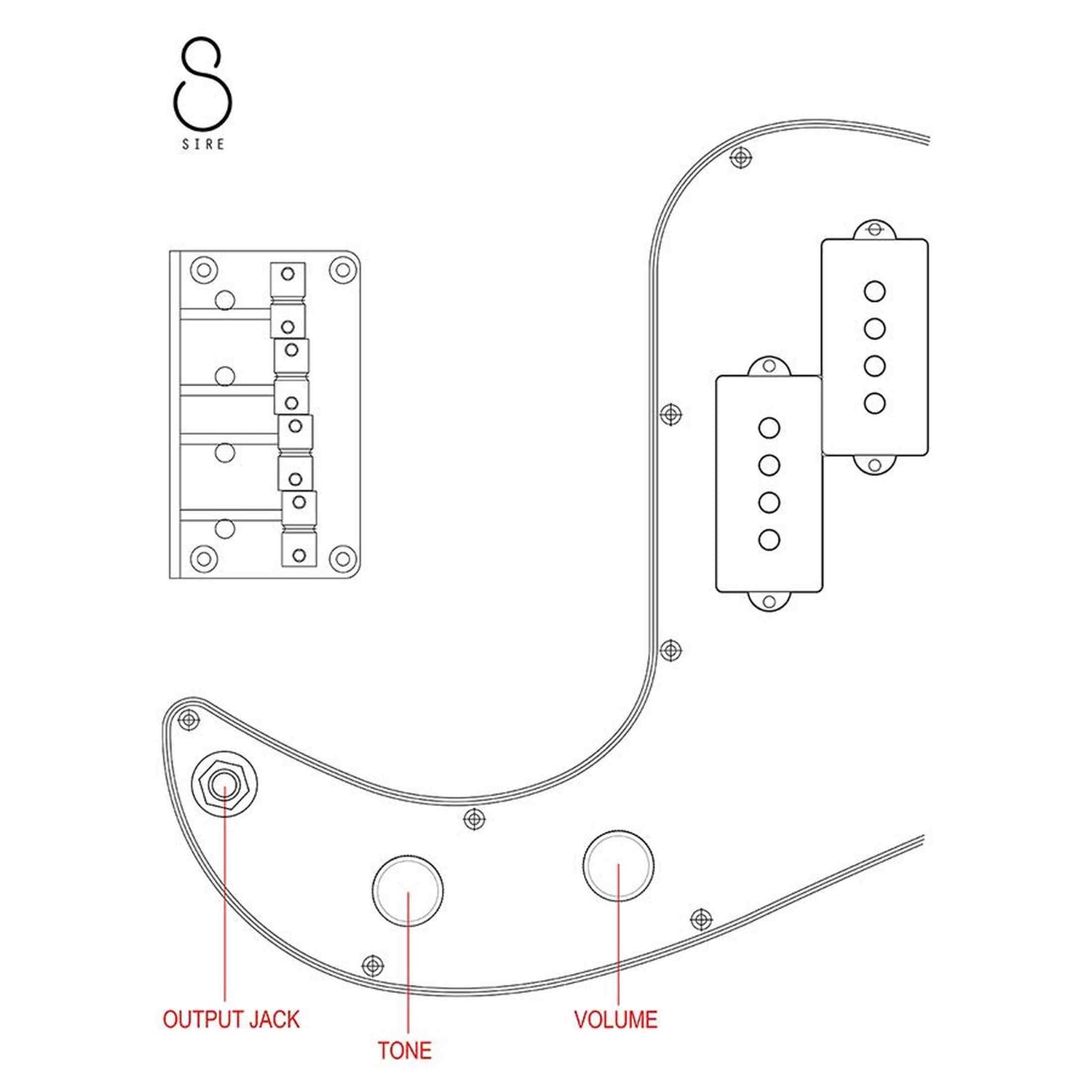 - Body vorm: Sire P bass type