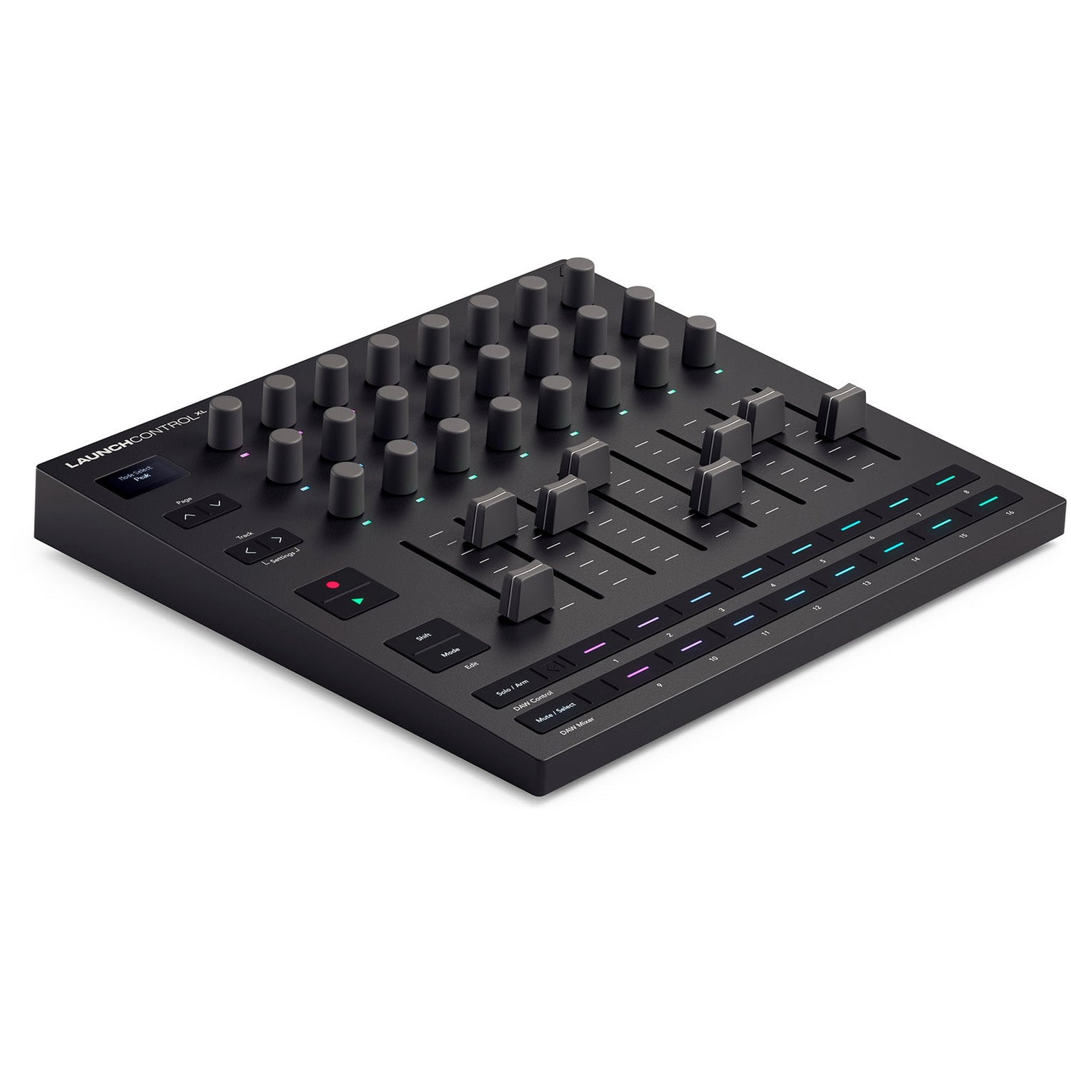 The Novation Launch Control XL 3 is a powerful and versatile USB MIDI controller , designed for complete control over DAWs, software synths, effects and external hardware . Equipped with 8 full-length 60 mm faders , 24 endless encoders with RGB LED indication and 16 assignable knobs , this controller offers ultimate flexibility in your production or live setup. The bright OLED display provides instant visual feedback, while dedicated transport buttons for Play/Stop and Record ensure a smooth workflow. Up to 15 user modes can be saved, allowing you to fully customise the Launch Control XL 3 to suit your way of working.