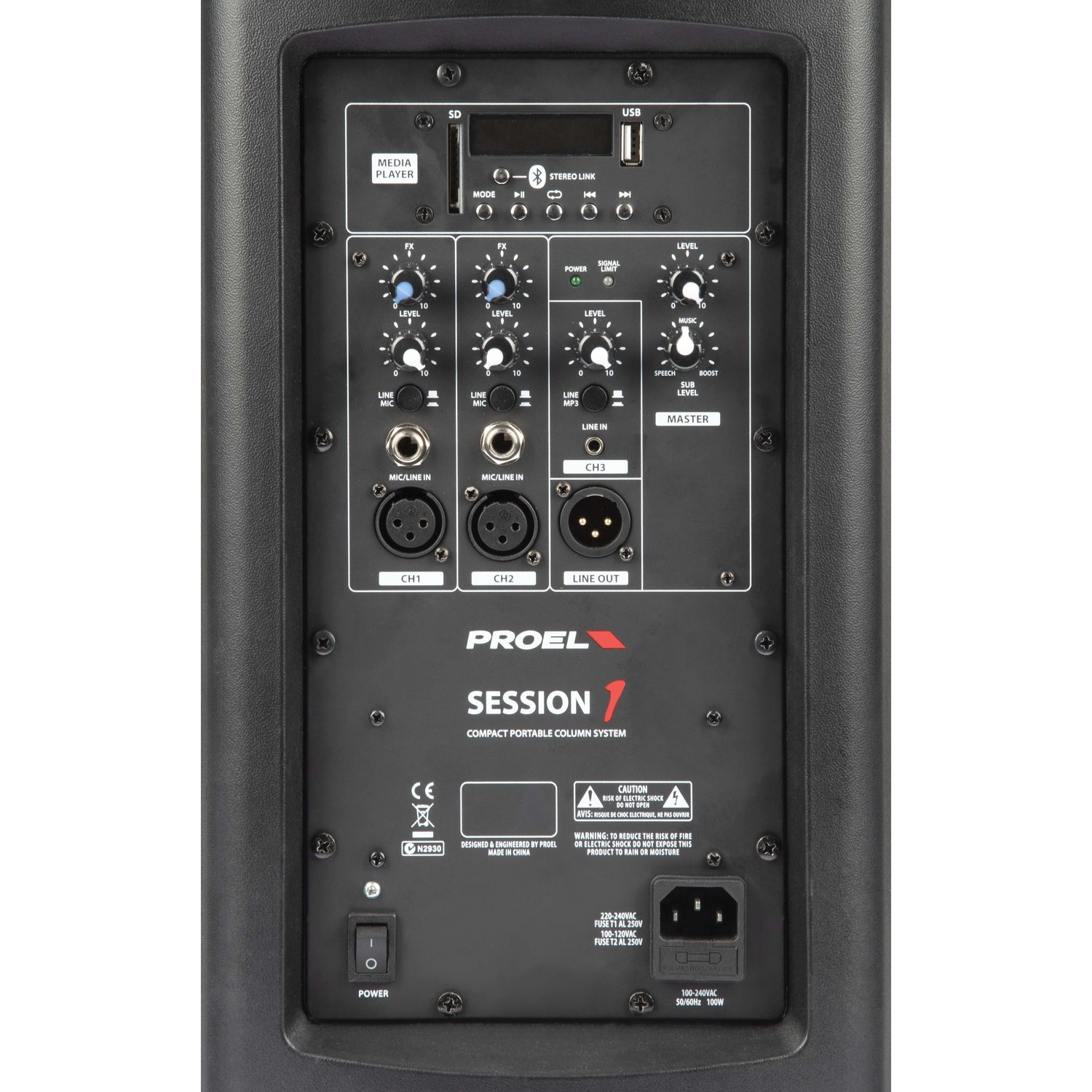 Discover the versatility of the Proel SESSION1, a portable column system that excels in strength and flexibility. Featuring a lightweight yet ultra-durable polypropylene enclosure, this system solution offers an unparalleled sound experience. The column is equipped with four 2.5" full-range speakers and a powerful 8" subwoofer, for impressive and balanced sound.