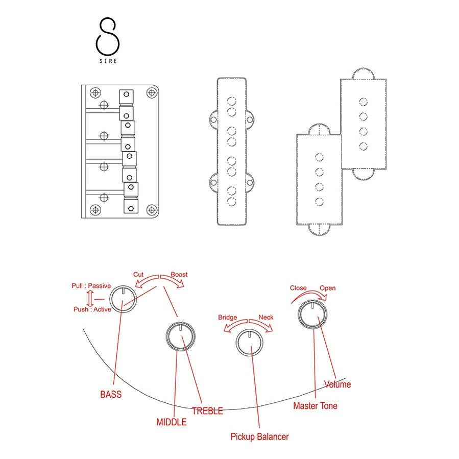 - Controls: Volume/Tone, Blend, Treble/Middle, Bass (with push/pull passive mode)