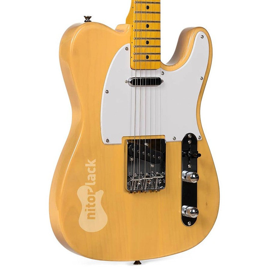NitorLACK N167028108 is a professional- grade dual-coat polyurethane lacquer in the iconic Butterscotch Blonde color, famous from the first Fender Telecasters from 1952. This semi-transparent finish allows the wood grain to subtly shine through, with the visibility varying depending on the number of coats applied. For a more expressive grain structure, black pore filler or stain from the NitorLACK range can be used.