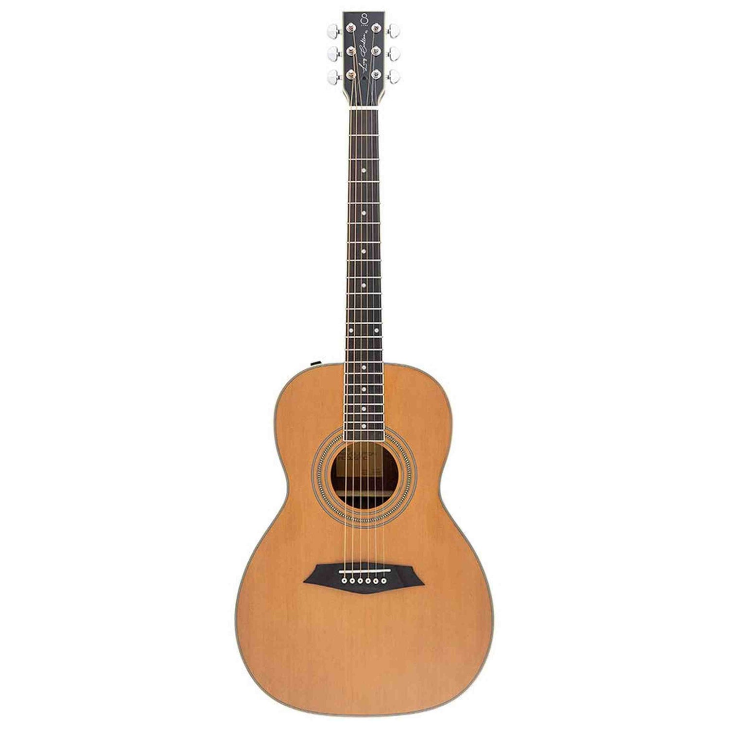 The Sire Larry Carlton A3PSNT is a stylish and versatile parlor guitar featuring a roasted solid spruce top and mahogany back and sides , resulting in a balanced and warm tone with excellent projection . Its parlor size makes this guitar light and comfortable to play , perfect for fingerpicking, blues, and singer-songwriters seeking an expressive, characterful sound.