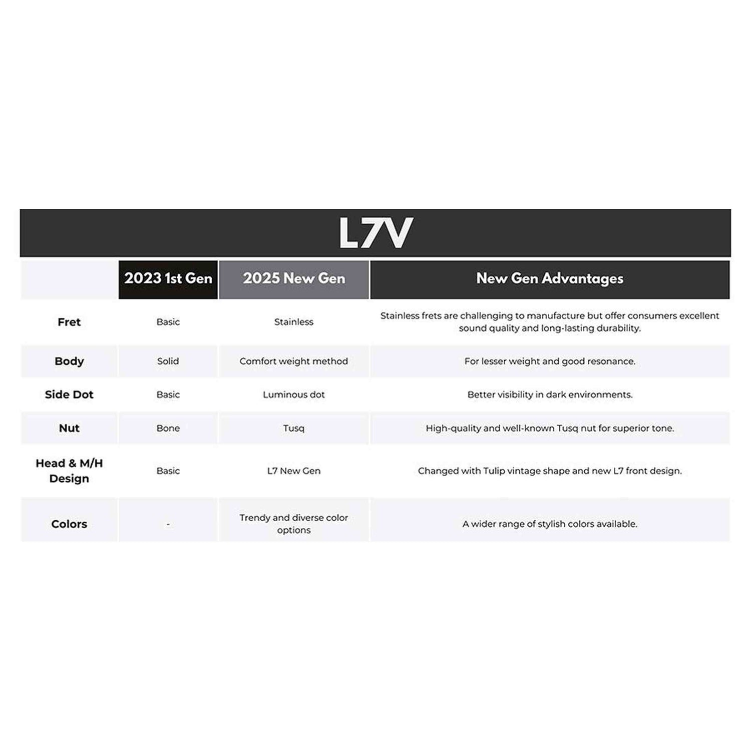 - Fingerboard : Ebony Edgeless™ (Rolled Fretboard Edges)
