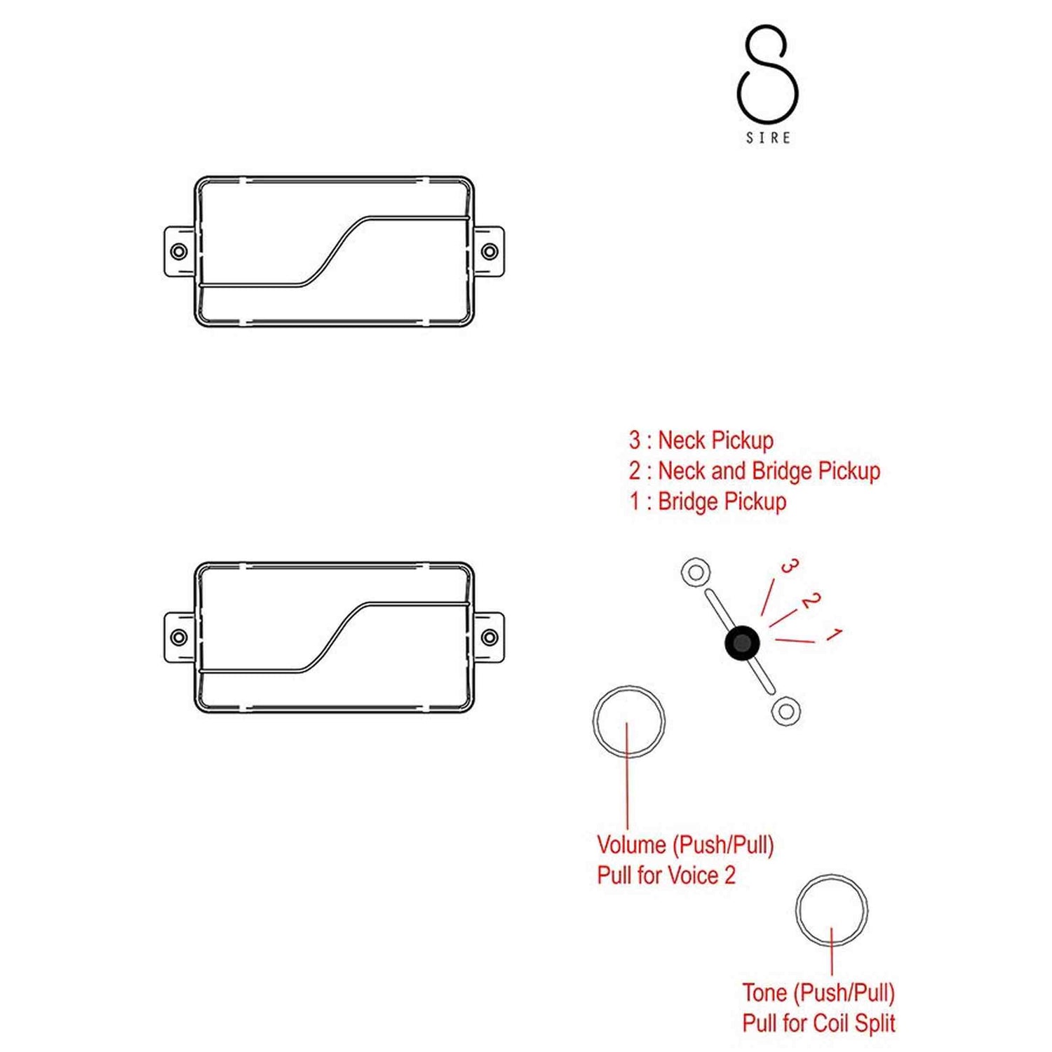 - Tone Control (Push/Pull for Coil Split)