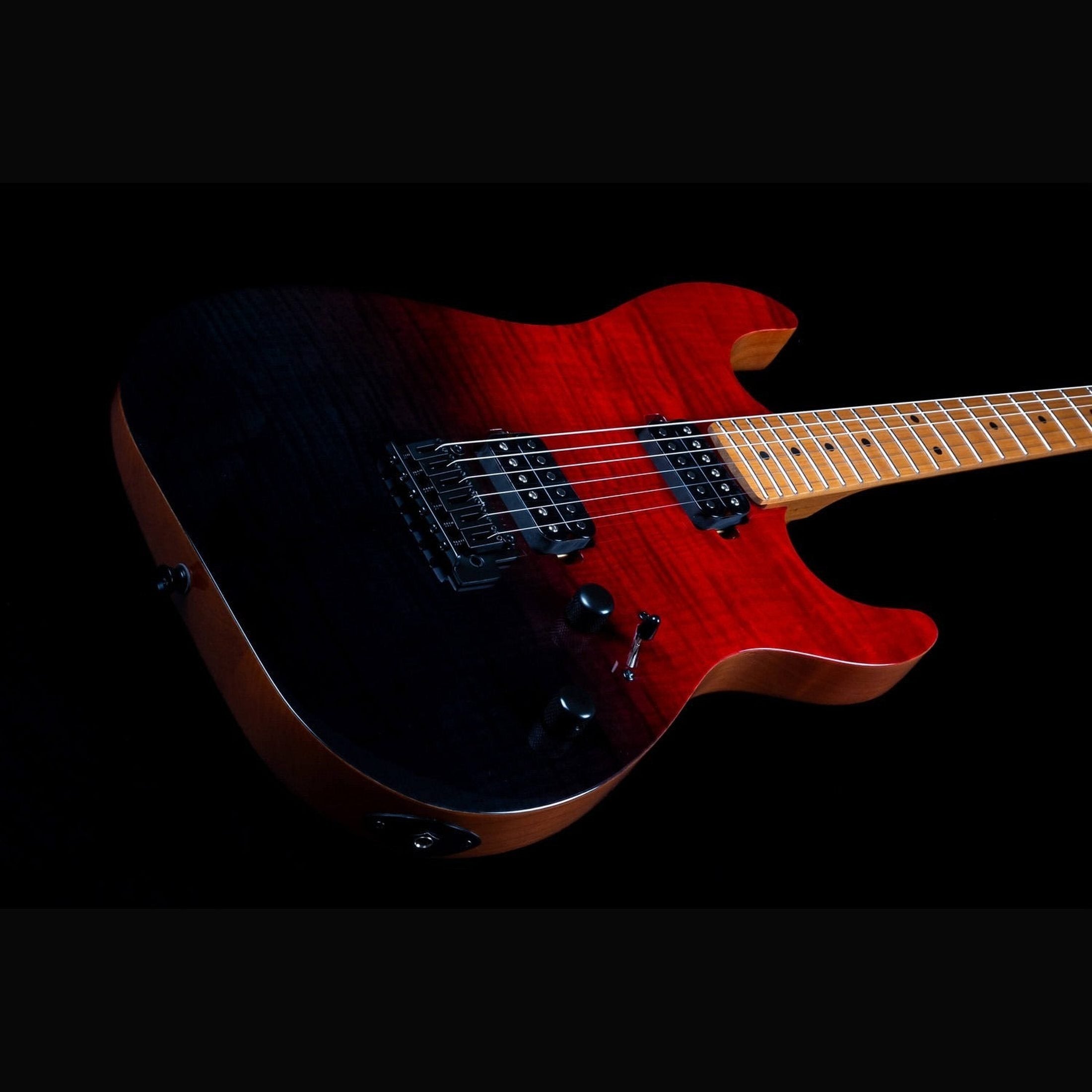 JET JS-1000 Vulcano S-style Electric Guitar HH Flame Maple Top Roasted Maple Transparent Red