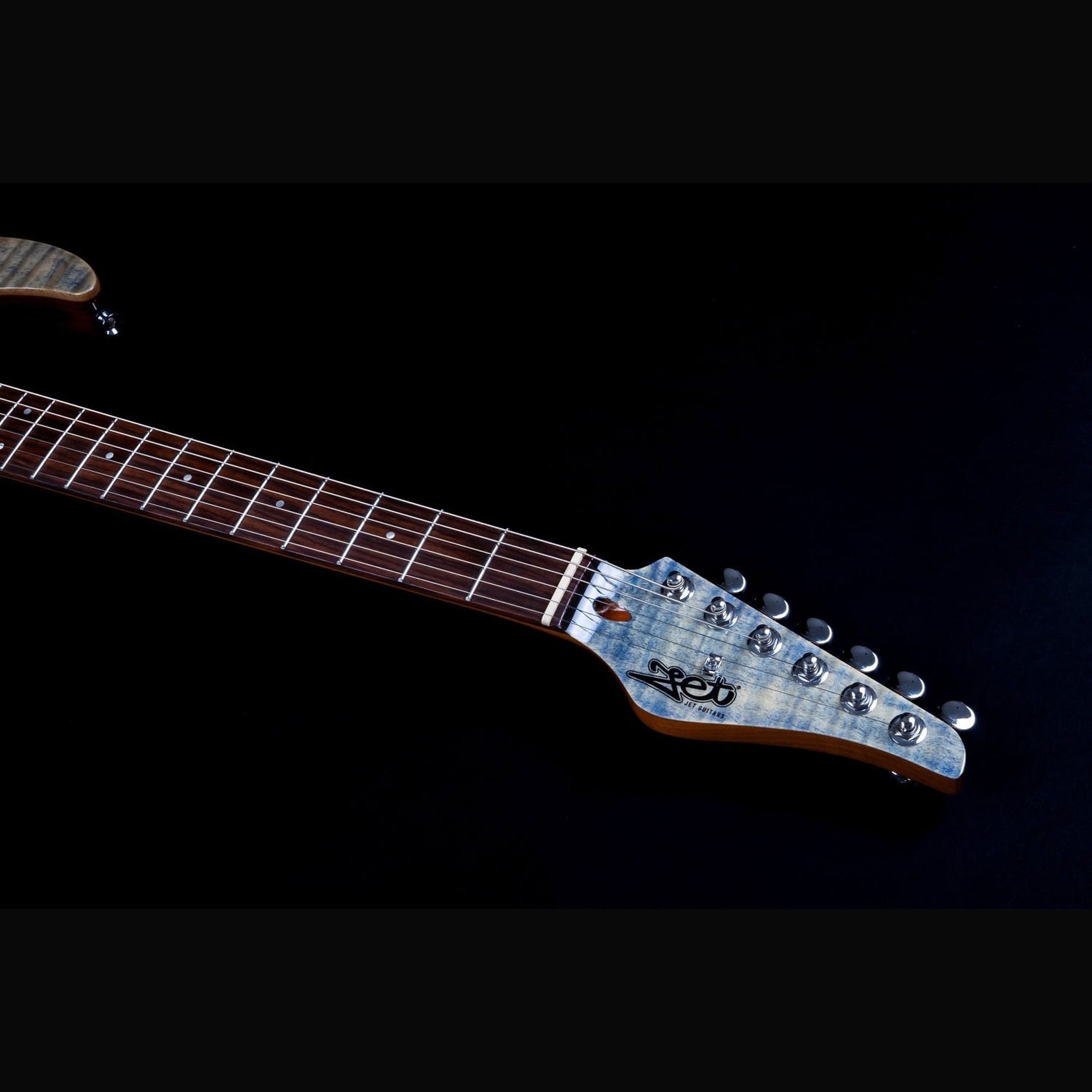 JET JS-45 Indigo Gray S-style Electric Guitar HSS Flame Maple Top Rosewood Fingerboard Indigo Gray