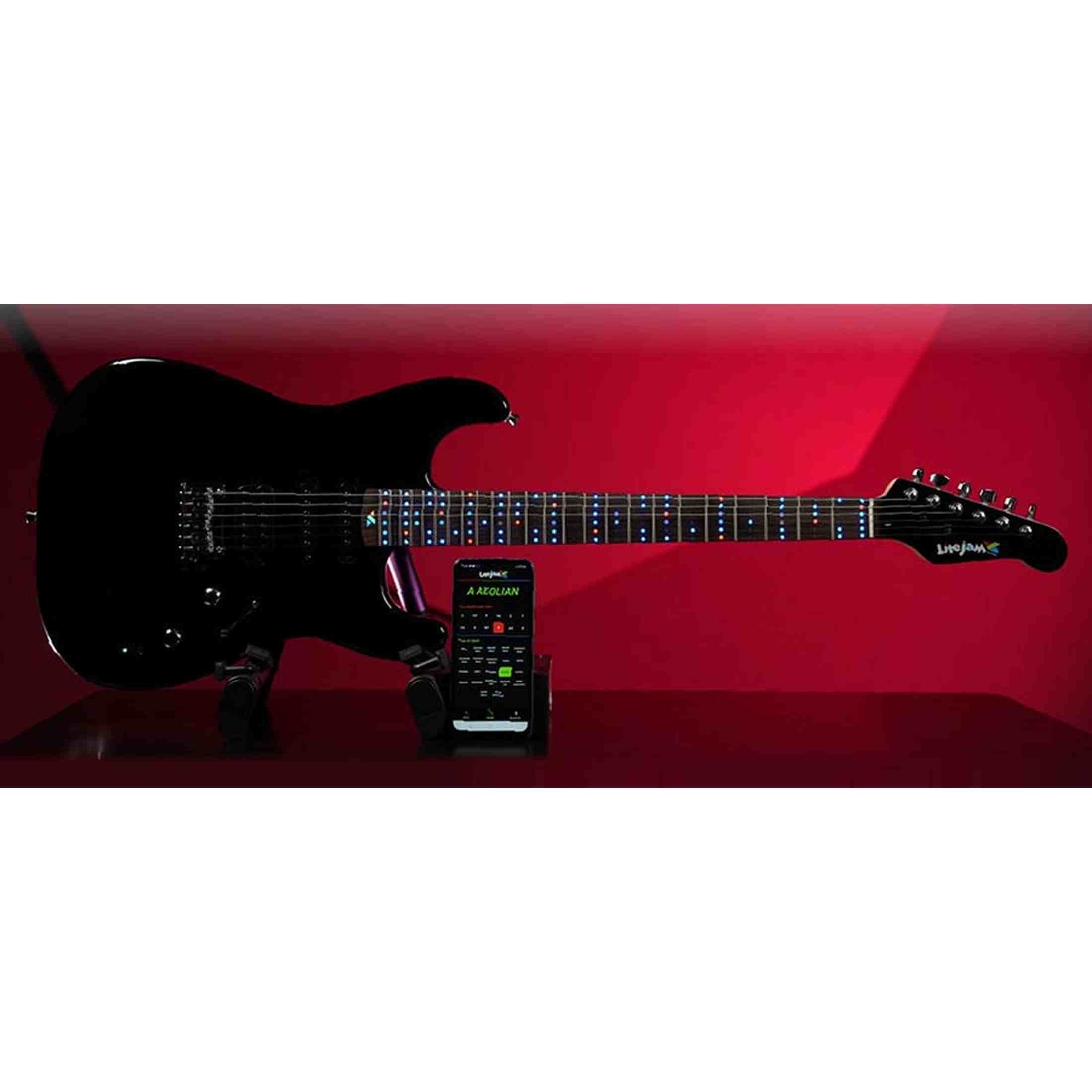 The Litejam RGB24/WH is a full-fledged electric guitar with 144 RGB LEDs in the fretboard, specially designed to make your playing experience visual and intuitive. Thanks to the free app, you can see chords, scales, arpeggios, and tabs illuminate directly on the neck. This makes it easier to learn and quicker to understand finger placement. It feels and sounds like a real electric guitar, but with smart visual aids that work for both beginners and experienced guitarists and teachers.