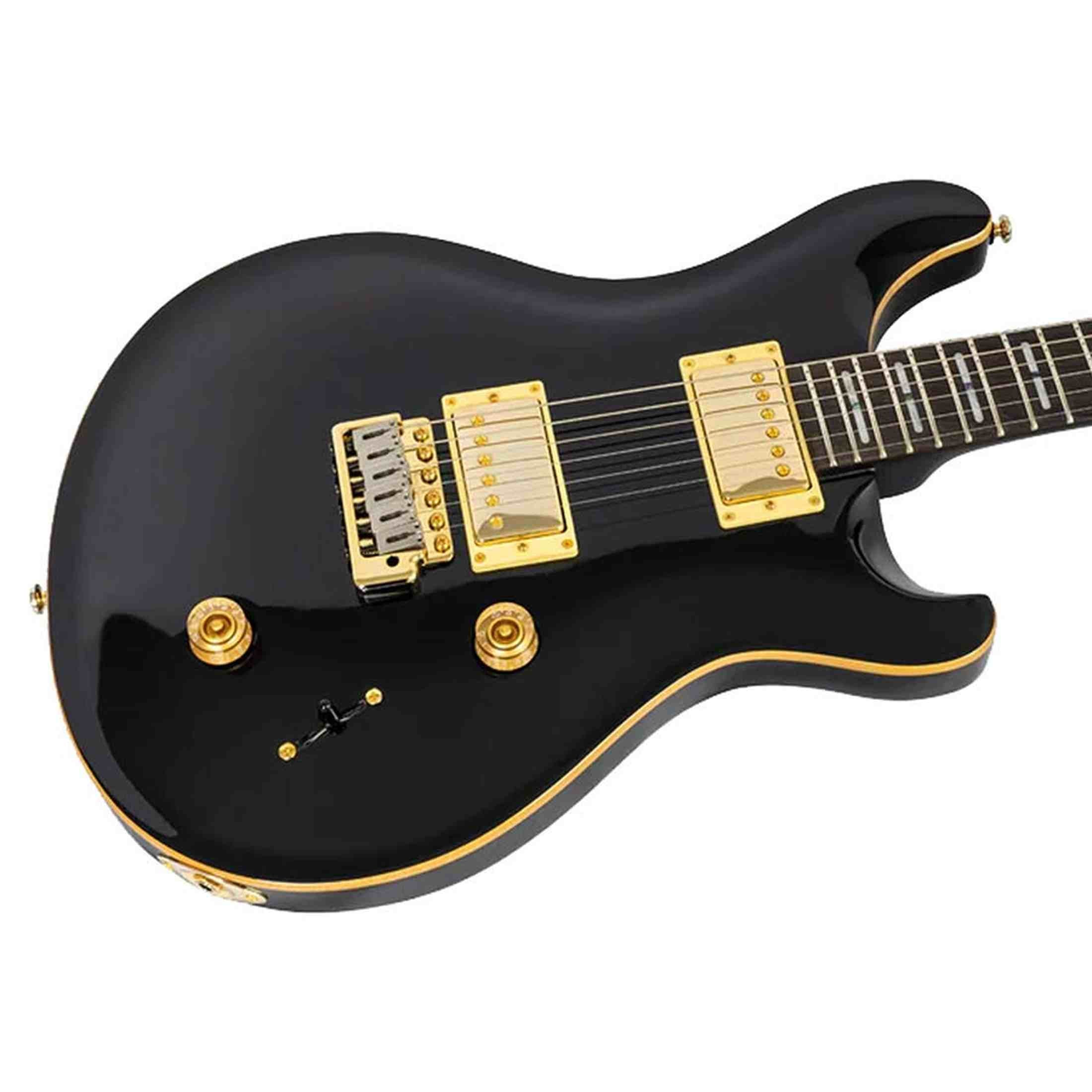 The Sire Q7/BK Larry Carlton is a premium electric guitar with a chambered mahogany body and solid maple top, finished in classic black with gold hardware. This high-end Q series guitar is designed for maximum comfort and smooth playability, featuring a set-in neck and Edgeless™ ebony fingerboard for effortless access to all frets.