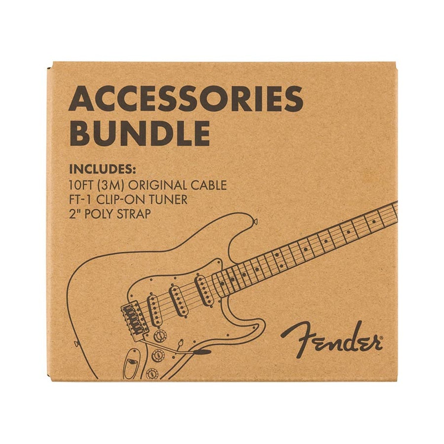 Take your musical experience to the next level with the Fender Accessory Kit, a comprehensive accessory bundle. This carefully curated set includes essential Fender accessories every guitarist needs: a convenient clip-on tuner for accurate and fast tuning, a sturdy 3-meter instrument cable that ensures optimal signal transfer, and a durable polyester guitar strap that provides comfort during long practice sessions and performances.