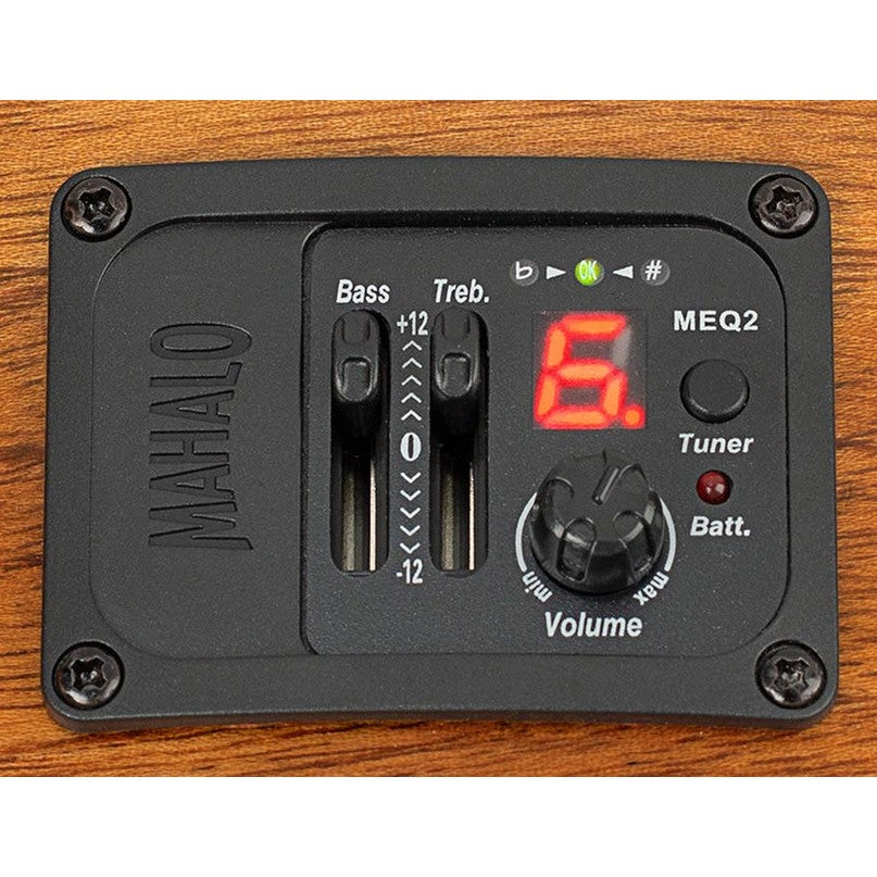 The mahogany neck and amara ebony fingerboard provide a comfortable and smooth playing experience. In combination with the Graph Tech NuBone XB saddle and Aquila Super Nylgut strings, this ensures optimal resonance and clarity. The Mahalo MEQ2 preamp with 2-band EQ and built-in tuner makes this ukulele fully prepared for amplified use during performances or recording. Comes with a sturdy carrying bag with shoulder strap.