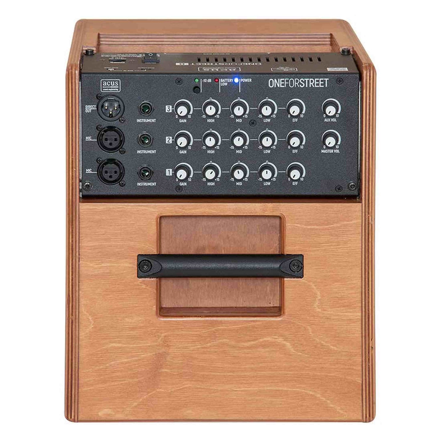 The Acus ONE FOR STREET 8 is a powerful and portable 90-watt amplifier for acoustic guitar, vocals, and backing tracks. With three fully featured channels—two of which are XLR and phantom power—you can effortlessly connect microphones and instruments. Each channel has its own 3-band EQ and adjustable reverb, allowing you to perfectly tailor the sound for each source.