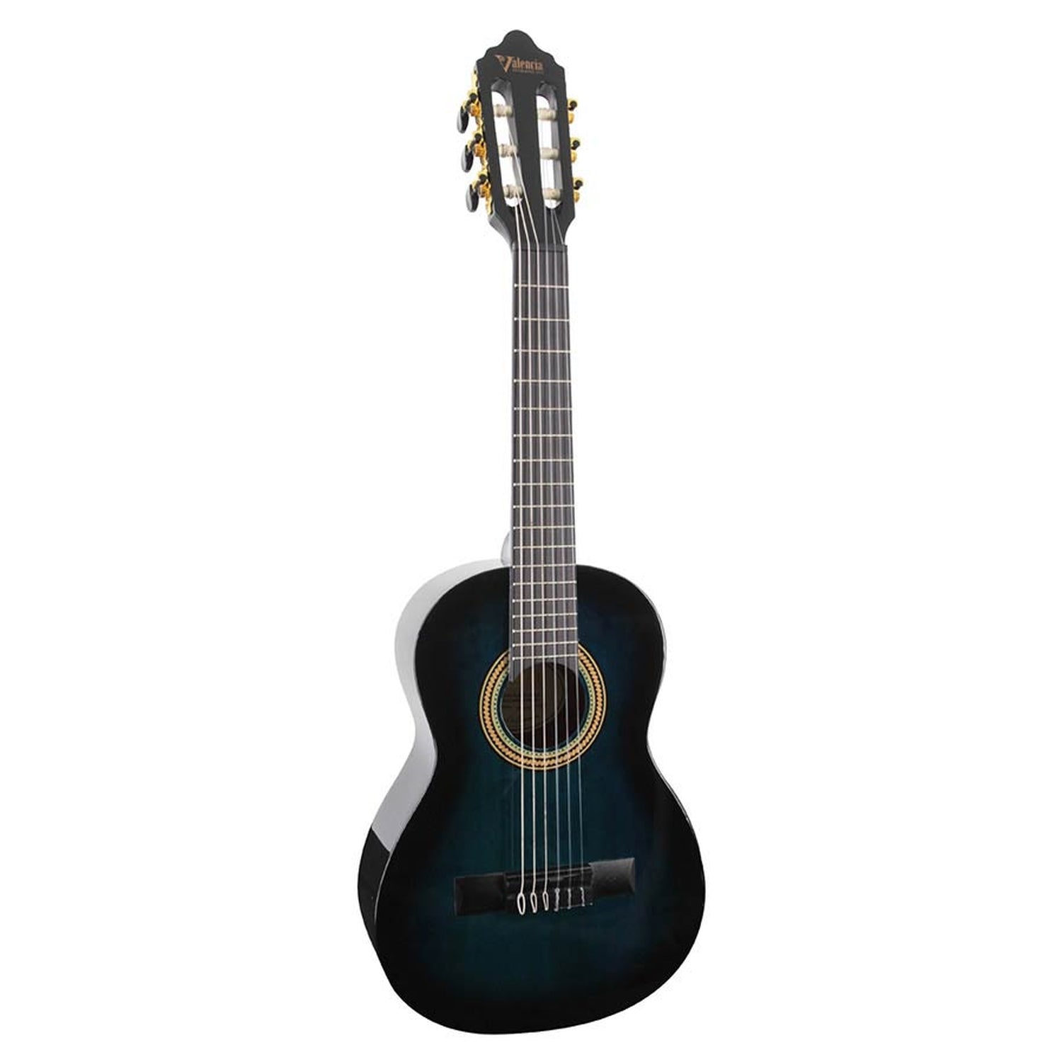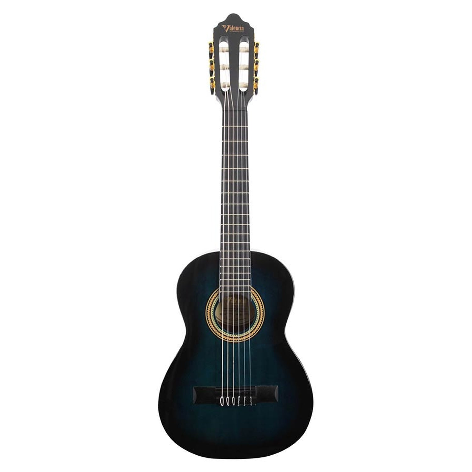 Valencia VC201TBU klassieke gitaar 1/4, sitka sparren top, nato zij- & achterblad, transparant blauwe finish