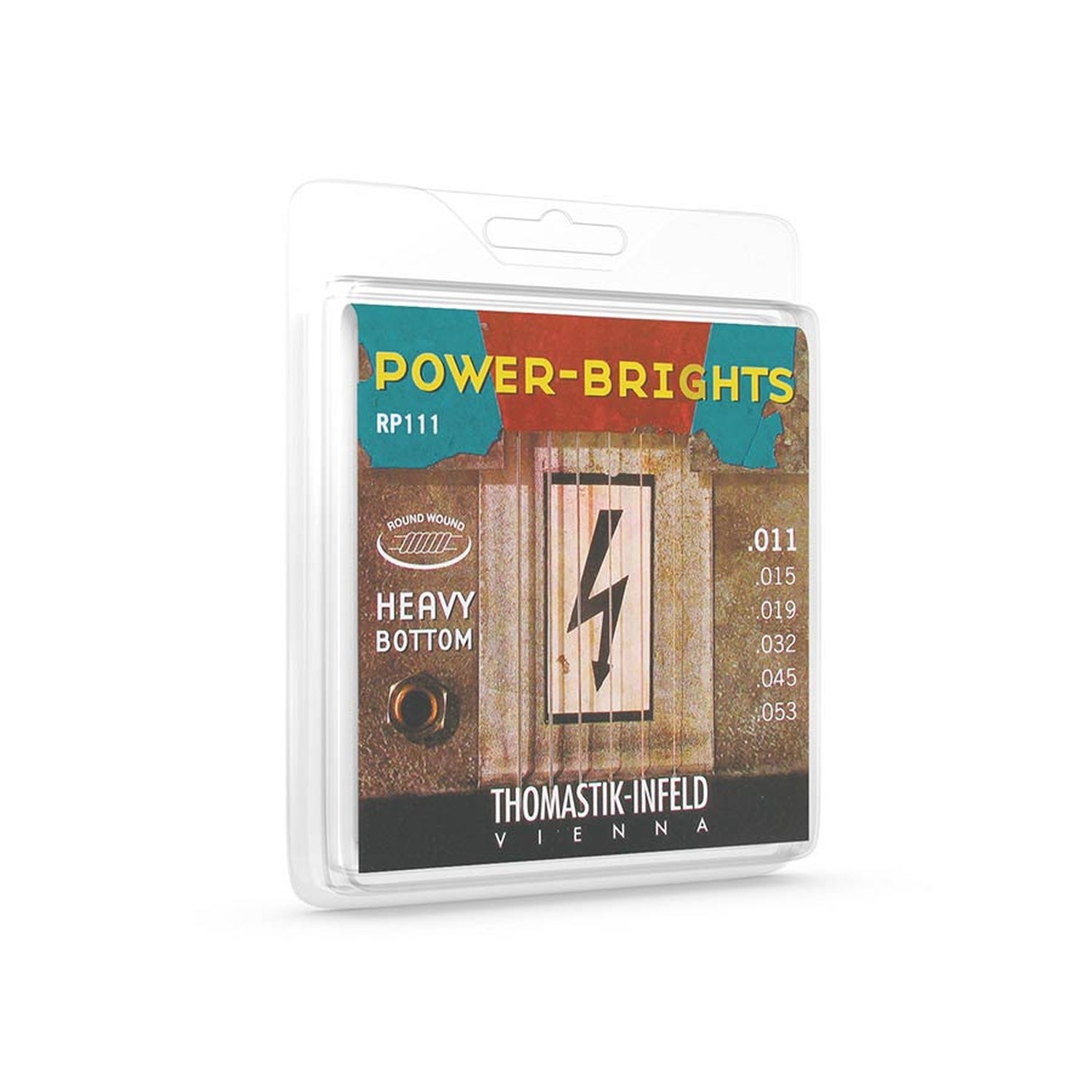 Thomastik Infeld THRP-111 snaren set elektrisch, magnecore, 011-015-019-032-045-053 Roundwound Magnecore alloy on a flexible hexcore for a bright aggressive tone, extra long sustain and reduced playing effort. Designed to enhance harmonics and percussive effects like tapping. High output: POWER-BRIGHTS love distortion!