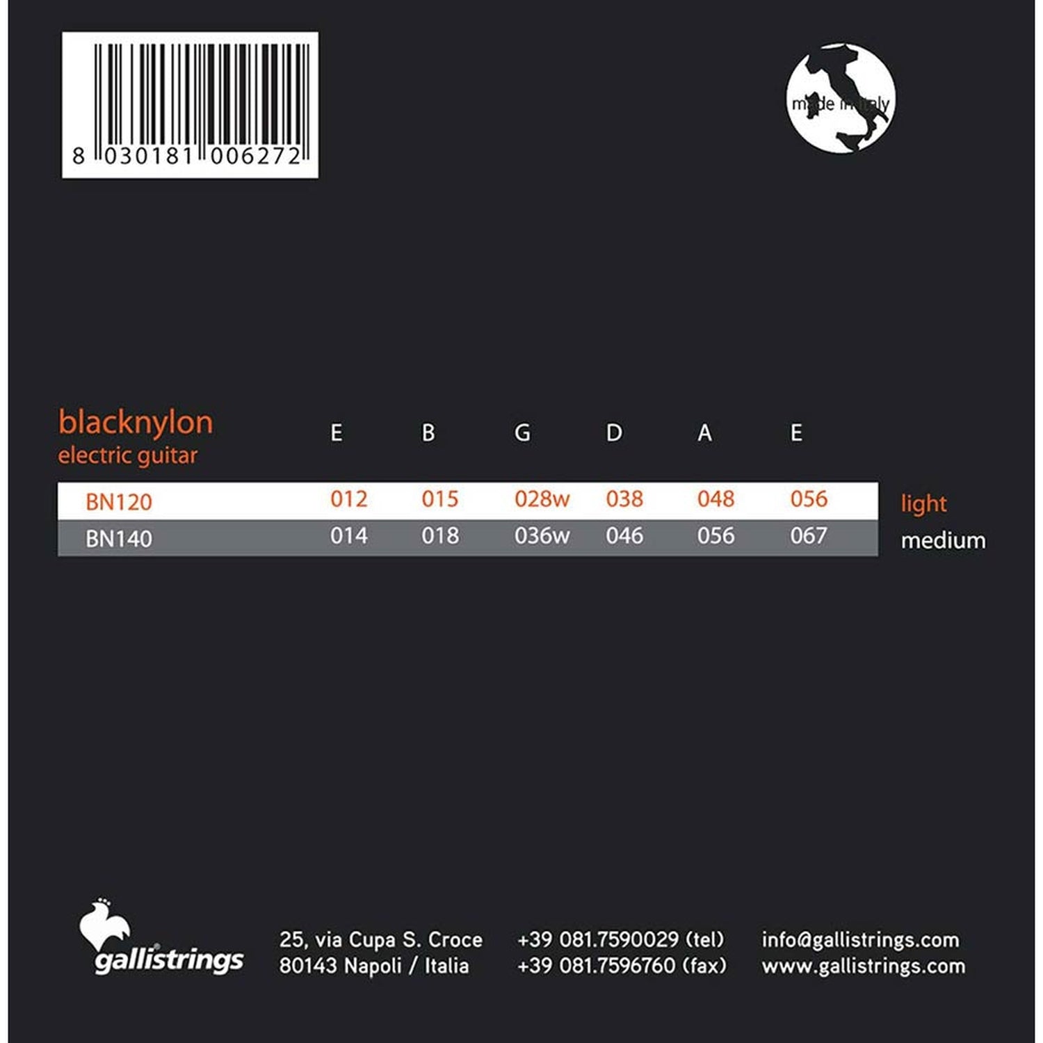 Galli BN-120 Black Nylon Paolo Anessi Signature is een unieke snarenset voor elektrische en semi-akoestische gitaren, ontwikkeld in samenwerking met jazzgitarist Paolo Anessi. De set bestaat uit zwart nylon tape-wound snaren met een roestvrijstalen kern, wat zorgt voor een warme, zachte klank met uitstekende intonatie en een bijzonder glad speelgevoel. Speciaal ontworpen voor hollowbody, semi-hollow en archtop gitaren, is deze set ideaal voor jazz, fusion en soulvolle muziekstijlen.