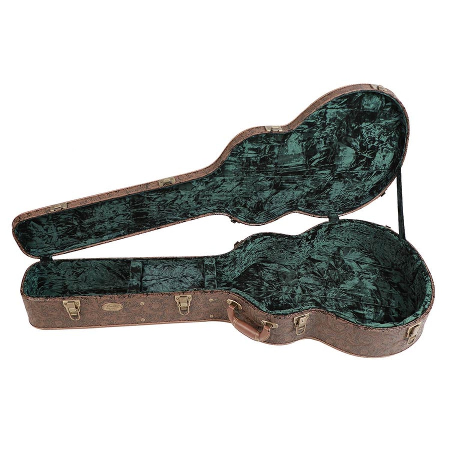 deluxe design koffer voor mini-jumbo-model akoestische gitaar, hout, met slot, carved fractals.