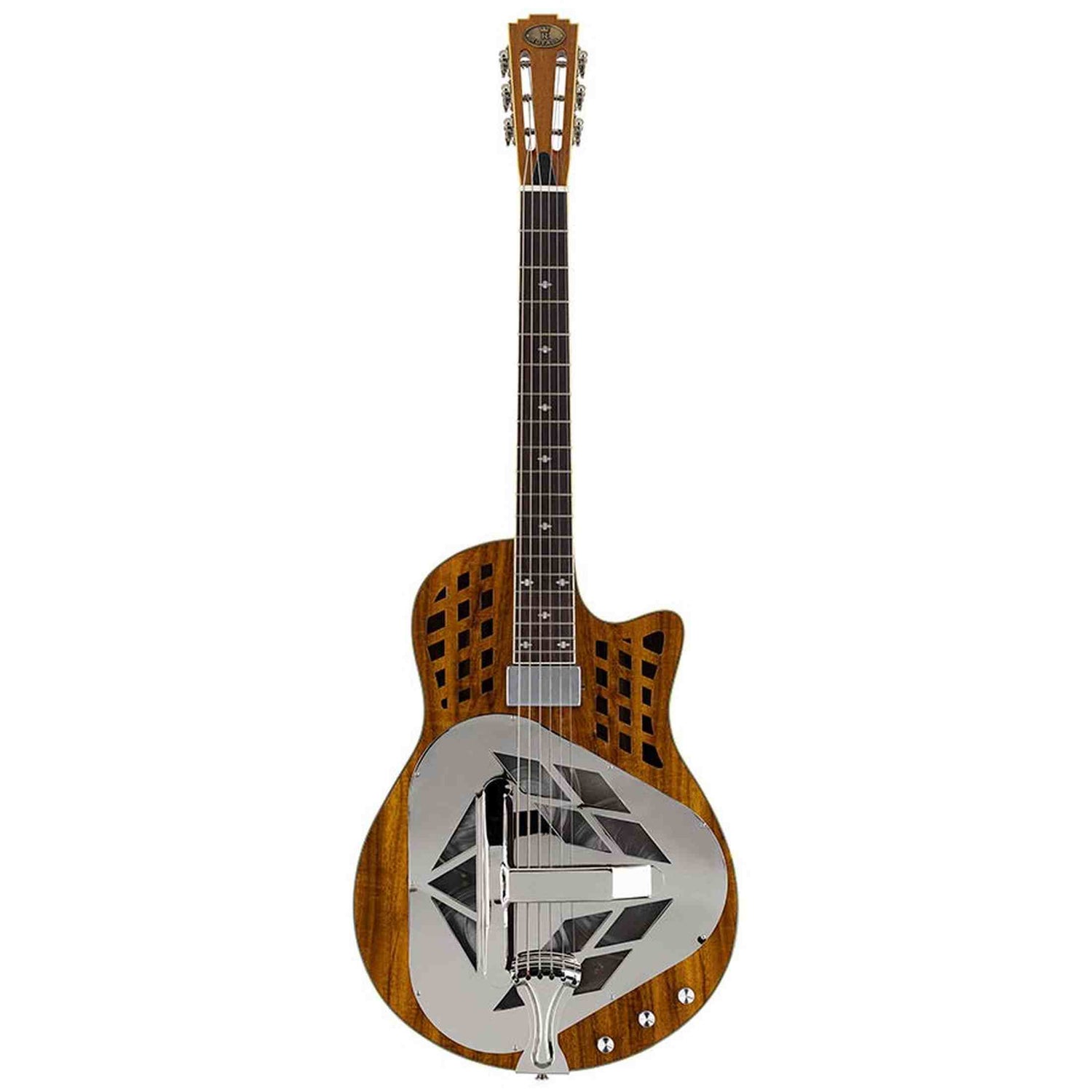 Royall KOA12DS Tricone Resonator 12-Fret – Hawaïaans Koa, Cutaway, Humbucker + Undersaddle Pickup, Softcase