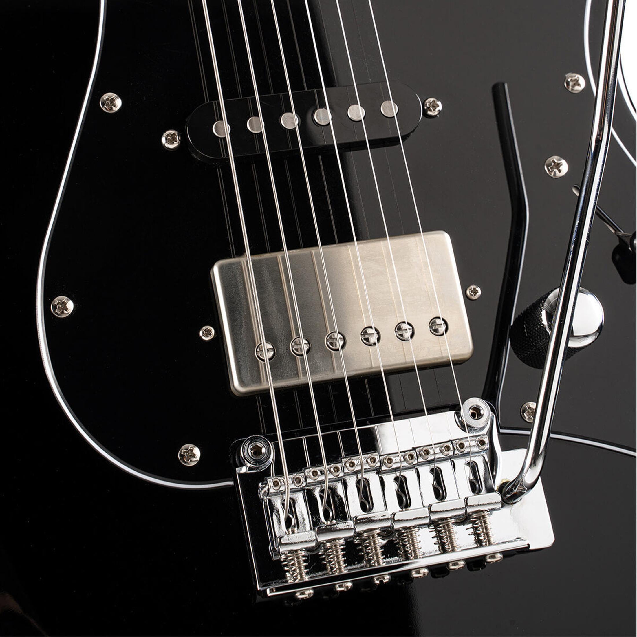 De Cort Voiced Tone HSS pickups geven de gitaar veel klankmogelijkheden. De VTH59 humbucker bij de brug levert kracht en sustain voor rock en leadpartijen. De VTS63 single coils in de midden en hals positie zorgen voor heldere en dynamische clean sounds. Met de coil tap op de toonregeling schakel je de humbucker naar single coil voor extra variatie. De 2 punts tremolo brug maakt vibrato effecten mogelijk en helpt de stemming stabiel te houden.