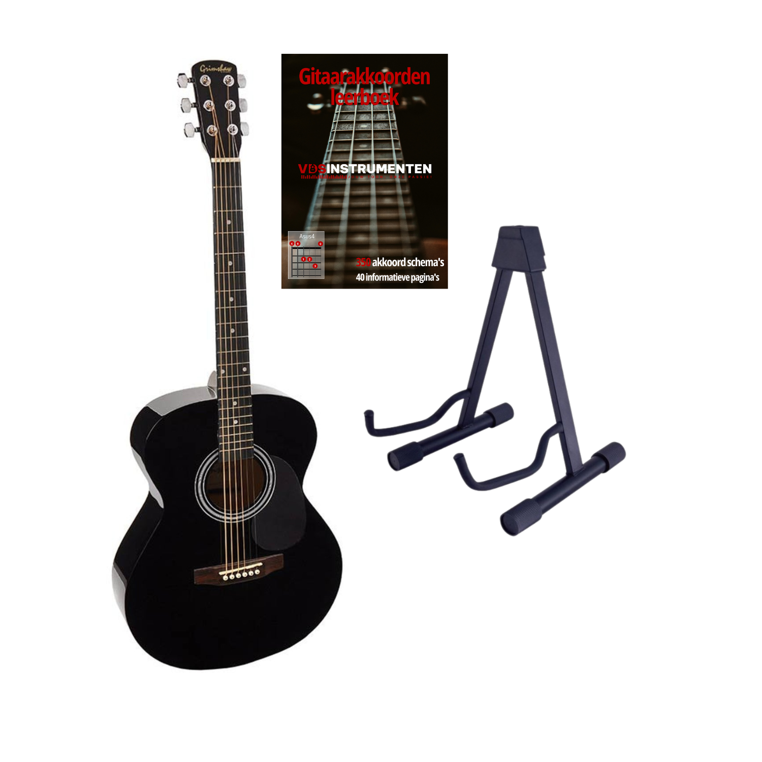 Nashville GSA-60-BK zwarte Western Gitaar met standaard en akkoordenboek
