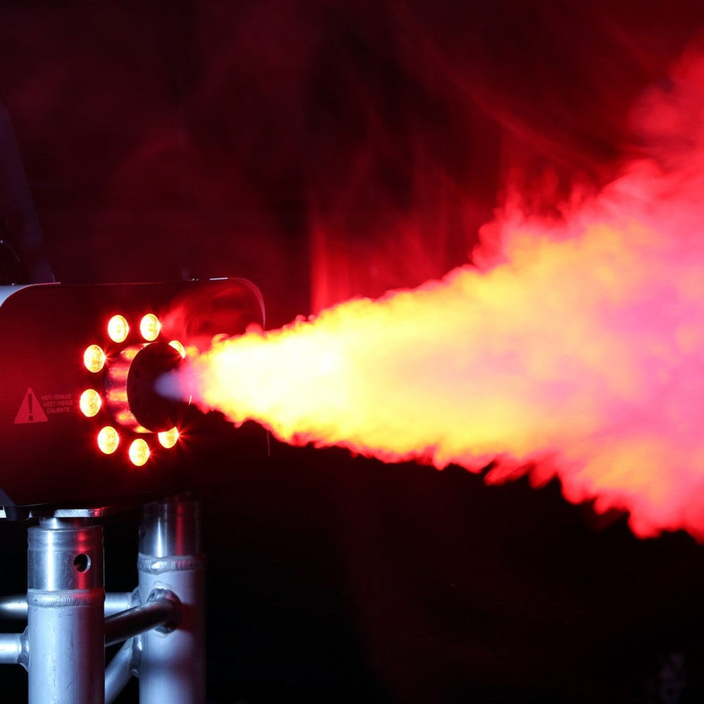 De beamZ S1500LED is een krachtige 1500W rookmachine met geïntegreerde 3-in-1 RGB LED-verlichting, ontworpen voor indrukwekkende visuele effecten in grotere ruimten. Met 9 heldere 3W LED’s en een rookoutput van 295m³ per minuut creëert deze machine een dichte mist die prachtig wordt opgelicht in rood, groen en blauw. De S1500LED is geschikt voor zowel stand-alone gebruik als DMX-besturing, en beschikt over 6 DMX-kanalen en 3-pin XLR in- en uitgangen, wat hem perfect maakt voor professionele lichtshows en podiumgebruik.