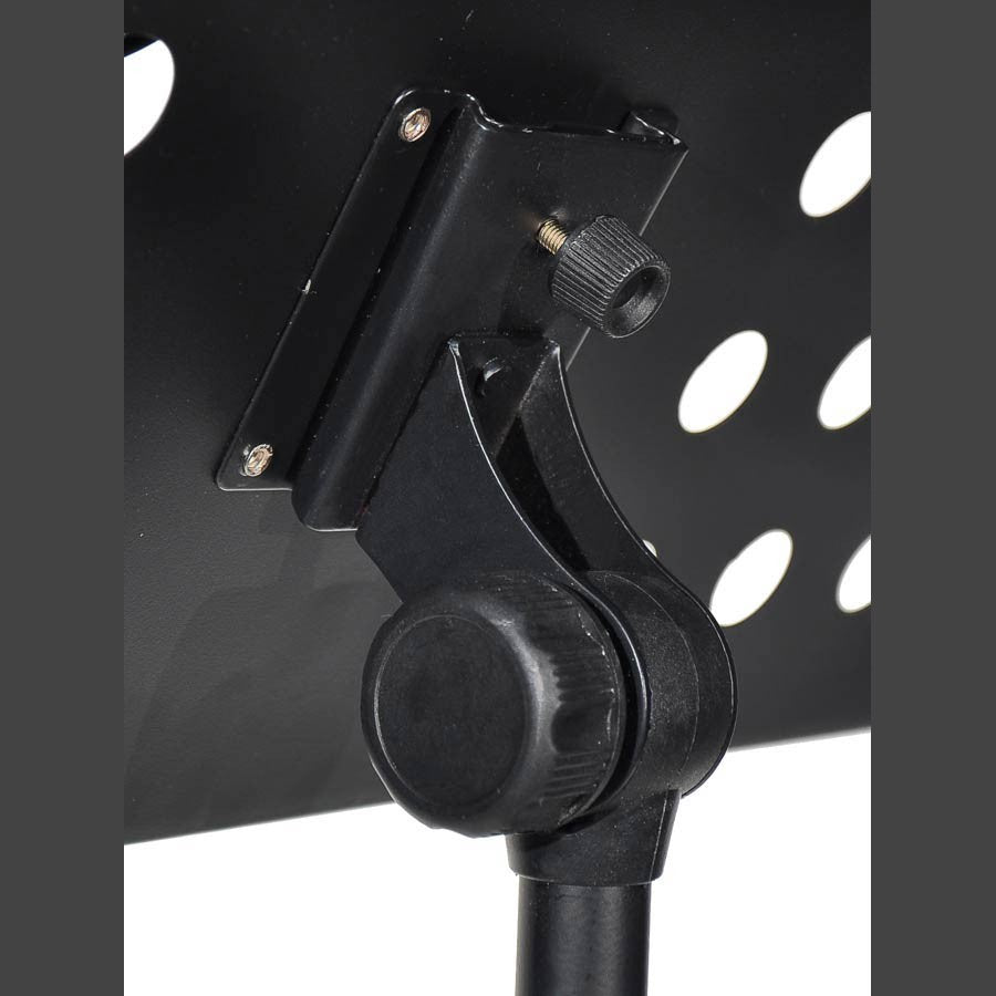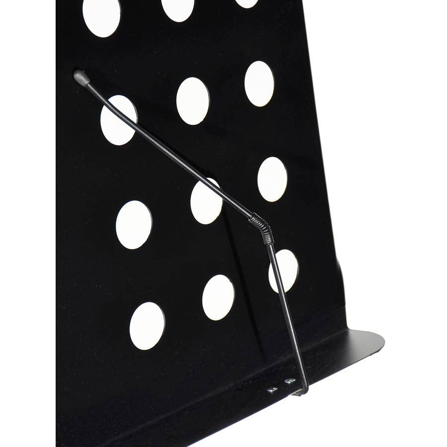 Voor extra stabiliteit is de OMS-280 voorzien van een stevige driepootconstructie met kunststof doppen, wat zorgt voor een solide grip en bescherming van de vloer. De twee ingebouwde papierklemmen houden bladmuziek stevig op zijn plek, zelfs bij een lichte bries.