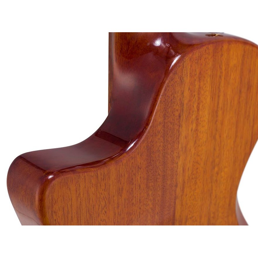 De Bromo BEN2C/TBK uit de Fusion Craft Series is een veelzijdige hollow body nylonsnarige gitaar met een elegante transparant zwarte hoogglans afwerking. Deze elektrische nylongitaar combineert klassieke warme klanken met moderne live-performance functionaliteit. Met een sparren bovenblad voorzien van 5A flamed okoume fineer en een mahoniehouten body biedt dit model rijke resonantie en helderheid. Dankzij de comfortabele cutaway, 48 mm topkam en een toets van amara ebony is dit instrument bijzonder prettig te bespelen, zowel voor klassieke gitaristen als voor muzikanten die overstappen van een elektrische of stalen snaren gitaar.