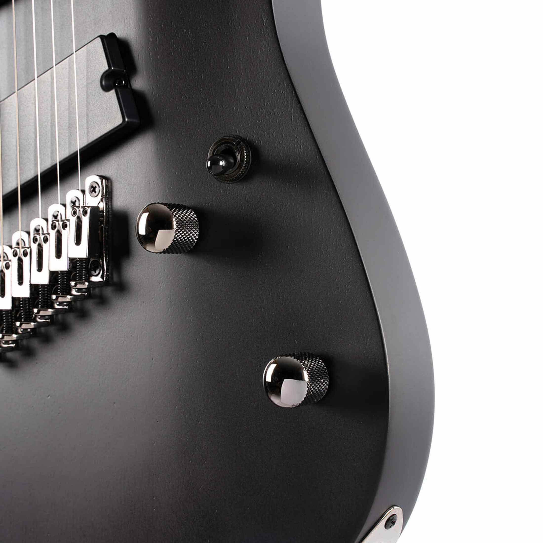 De PowerBar humbuckers zijn speciaal ontwikkeld voor multi string gitaren en leveren een krachtige en gebalanceerde output over alle zeven snaren. Hierdoor blijven riffs, akkoorden en leads duidelijk en strak klinken, ook bij hoge gain. De individuele brug met string through body constructie zorgt voor stabiele stemming en een directe snaarrespons. Met de eenvoudige bediening van volume, toon en een 3 standen schakelaar wissel je snel tussen verschillende klanken.