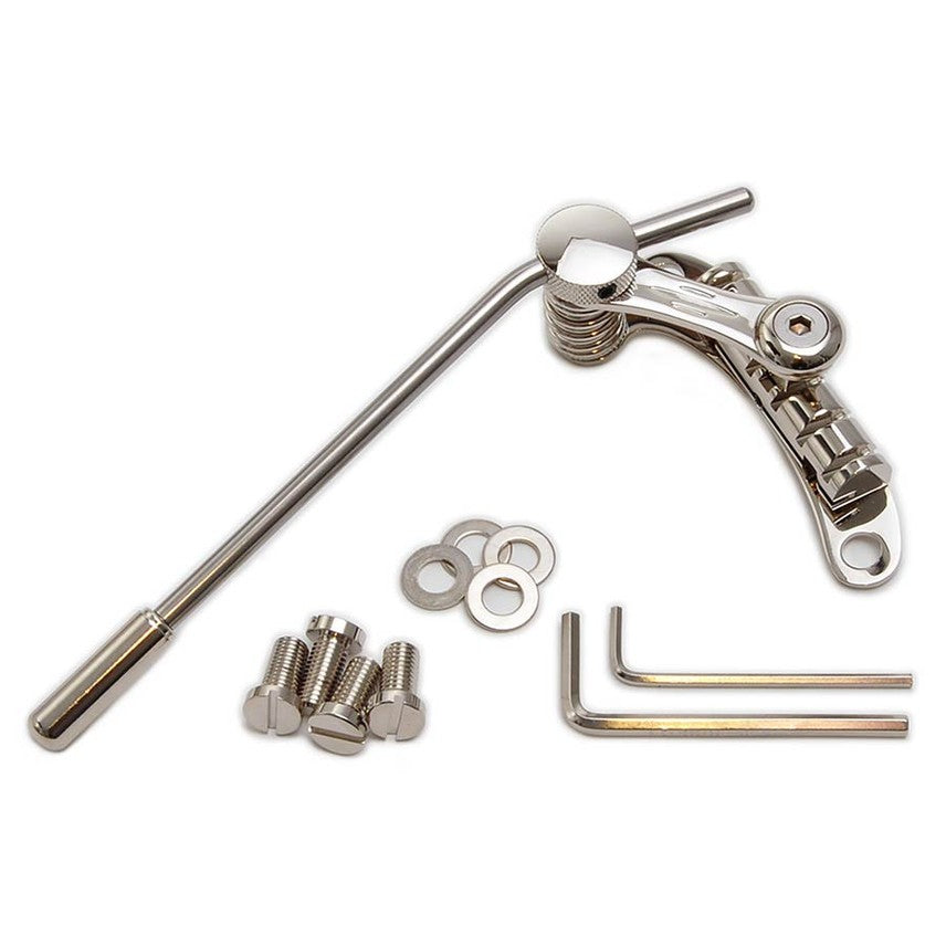 Göldo Originals TLT1N LT1 Drop-In Vibrato System biedt een elegante en praktische oplossing voor gitaren met een standaard stop-tail brug, uitgevoerd in een klassieke nikkelkleur. Deze door Duesenberg gelicentieerde vibrato laat zich eenvoudig monteren zonder te boren of te frezen: hij vervangt rechtstreeks de bestaande tailpiece dankzij de bevestiging aan de schroefbushings. De ronde arm is volledig verstelbaar in lengte en hoek, waardoor hij zich perfect laat aanpassen aan jouw speelstijl.