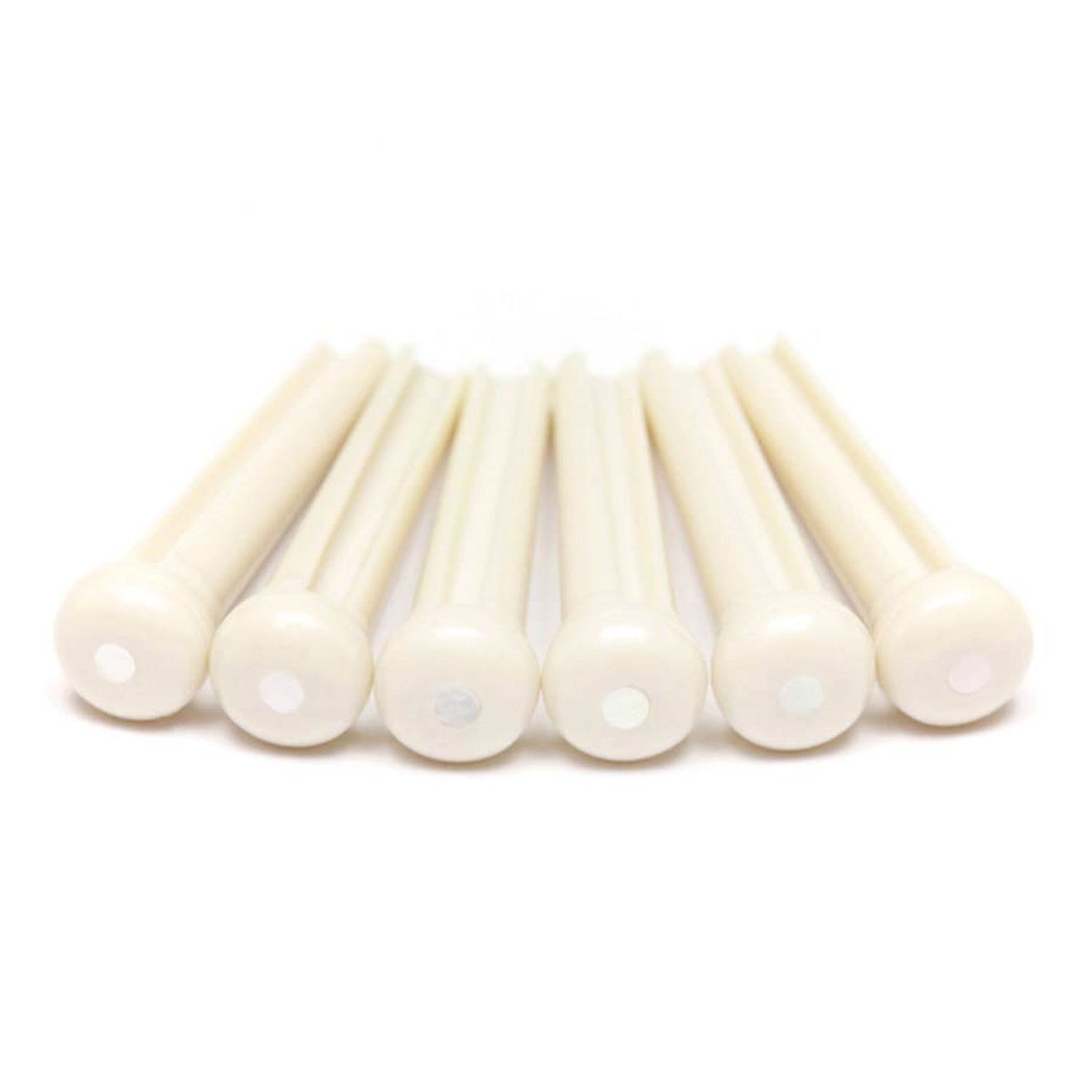 Deze set van 6 witte brugpinnen is vervaardigd uit TUSQ en biedt consistentie en betere harmonische inhoud voor jouw akoestische gitaar. Elke pin is voorzien van een 2mm parelmoeren inleg die zorgt voor een subtiele, verfijnde uitstraling.