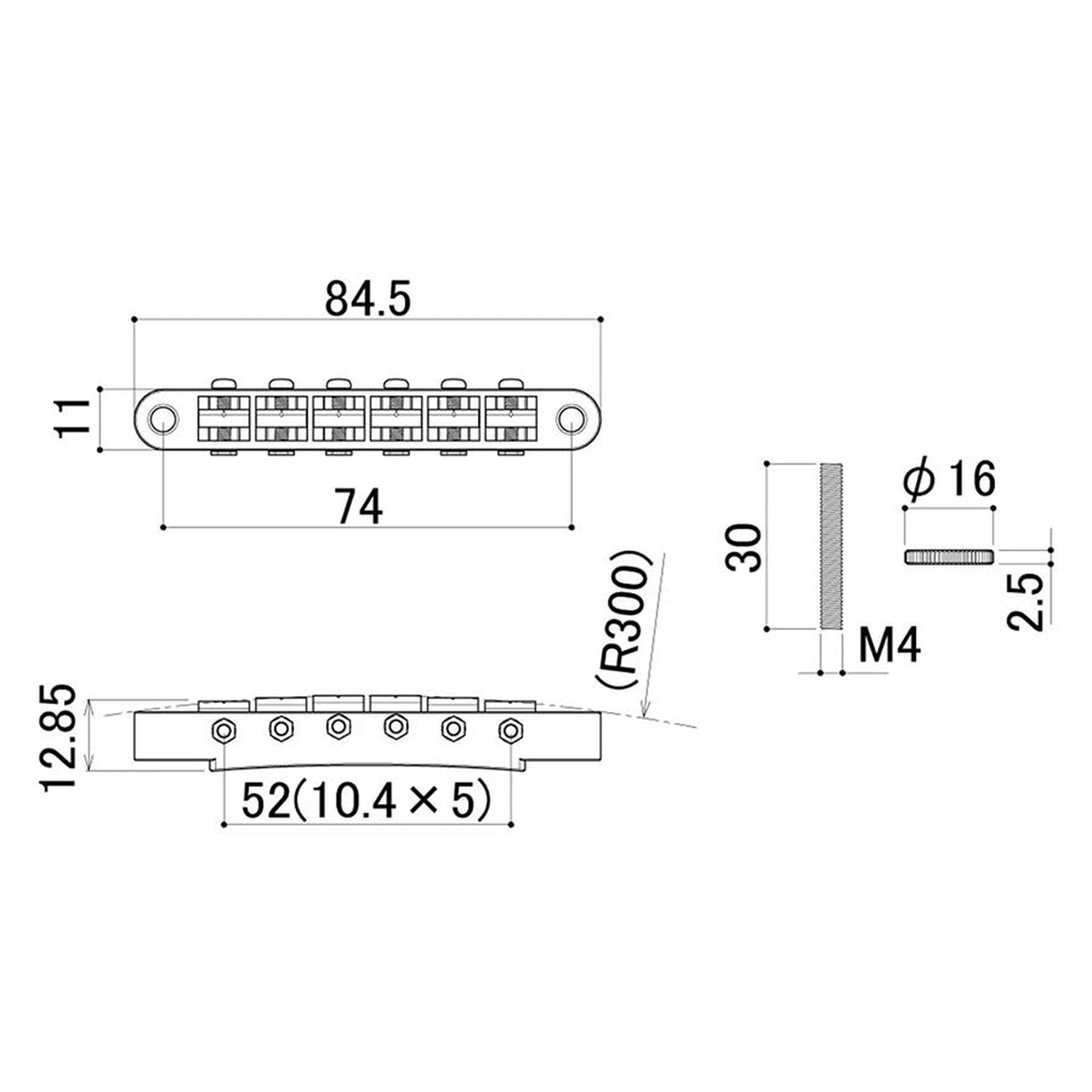 Hosco Japan GE104BNBS3 by Gotoh vintage style T-O-M bridge, 12" radius, brass unnotched saddles, nickel