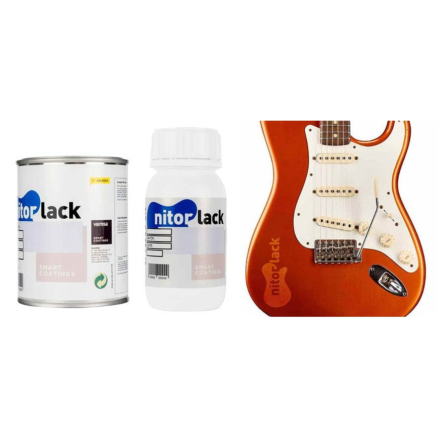 NitorLACK N167059108 is een tweevoudige polyurethaanlak in de kleur Candy Tangerine, een opvallende transparant oranje afwerking die sinds 2002 wordt gebruikt door Fender, met name in hun Custom Shop relic series. Deze kleur is geïnspireerd op de Candy-lijn uit de wereld van Hot Rods en Custom Cars, een lakconcept dat al in de jaren ’50 werd ontwikkeld. Candy Tangerine vereist een metallic ondergrond, zoals GoldTop, Shoreline Gold, Inca Silver of Silversparkle, om de kenmerkende gelaagde diepte en schittering te creëren.