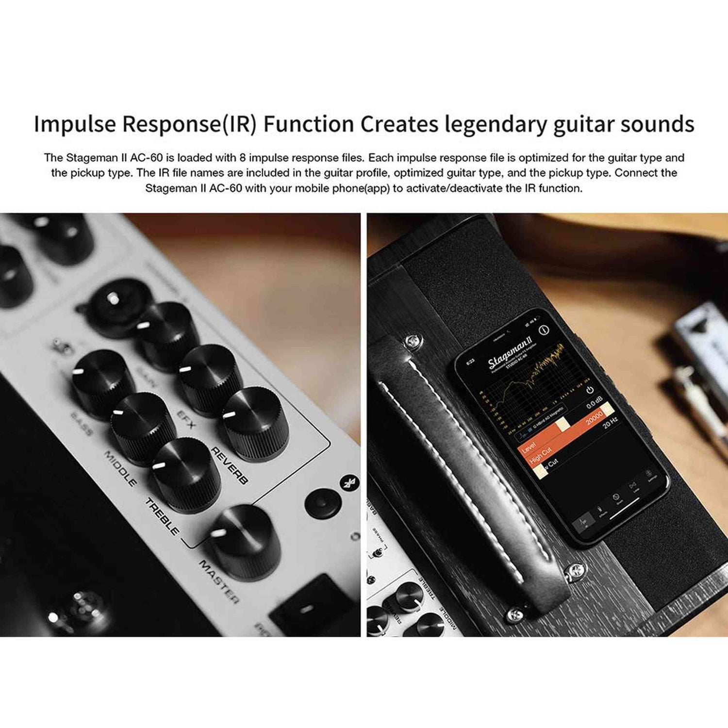 De NUX Stageman II AC-60 is een compacte 60-watt versterker met een natuurlijke, volle klank voor akoestische gitaar en zang. Dankzij twee onafhankelijke kanalen met EQ, gebaseerd op de klankkarakteristieken van microfoons en akoestische gitaren, klinkt je set-up helder en gebalanceerd. De ingebouwde DSP-technologie zorgt voor rijk volume en detail, zelfs bij lage volumes.