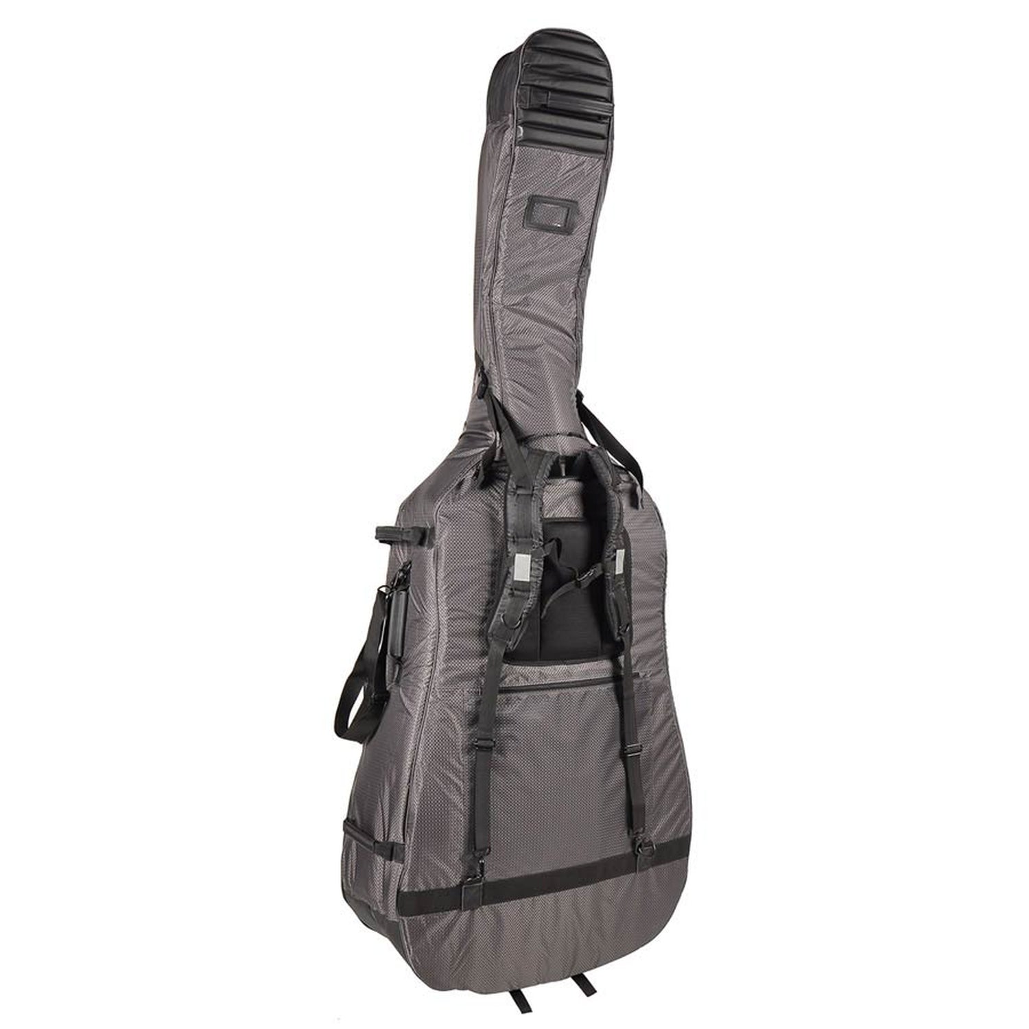 The bag features padded backpack straps, hip straps, and sturdy handles for optimal carrying comfort. The backpack straps are easily stored in a dedicated zippered compartment. Inside, there's extra padding to protect against the double bass's metal parts. The CB-844 also features a separate bow compartment and a spacious accessory pocket for sheet music and accessories. The perfect choice for those who want to combine mobility with maximum protection.