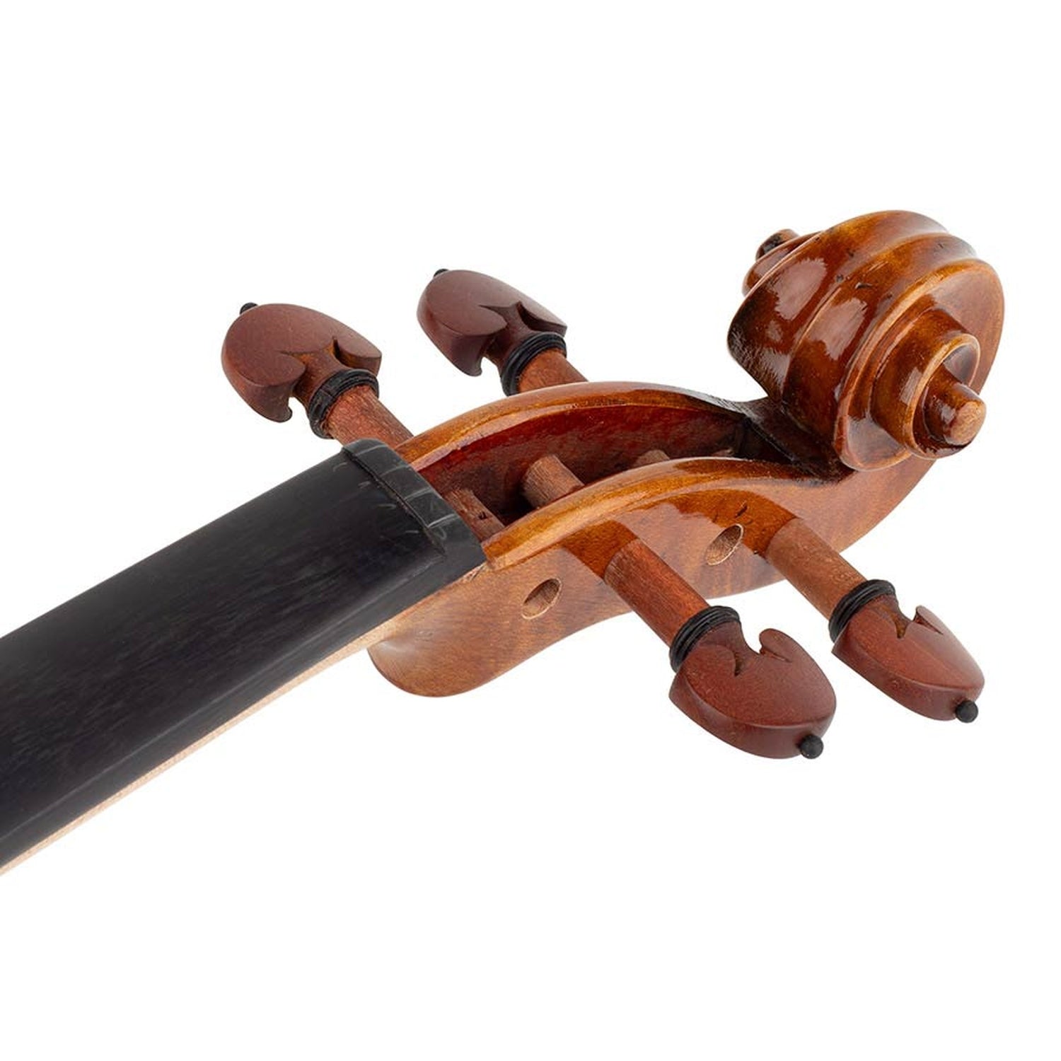 The Rudolph RV-3044 is a masterfully crafted violin that excels in craftsmanship and tone quality. The beautifully flamed maple back and sides, combined with a spruce top, deliver a warm, full tone and excellent resonance. The oil-based varnish with a subtle antique finish gives this violin a classic and refined appearance.