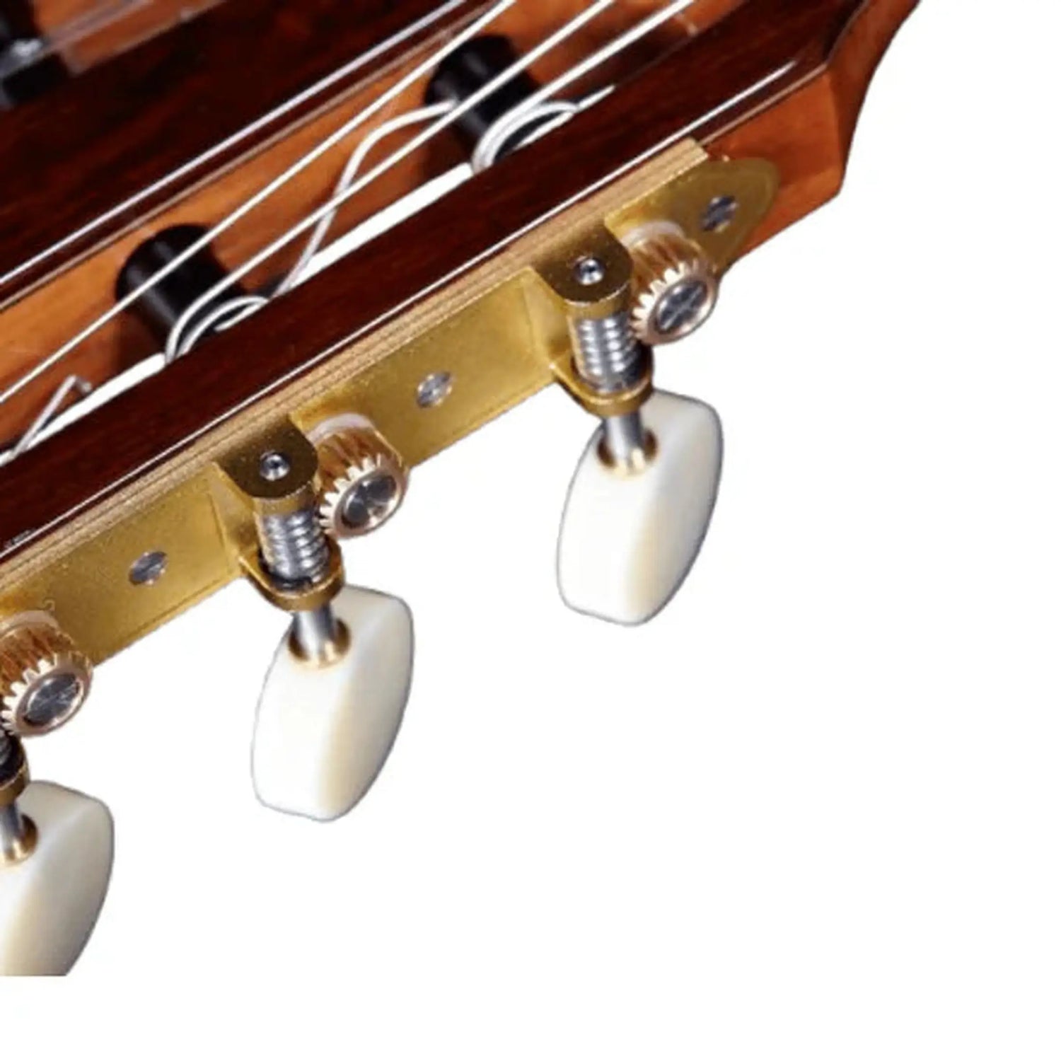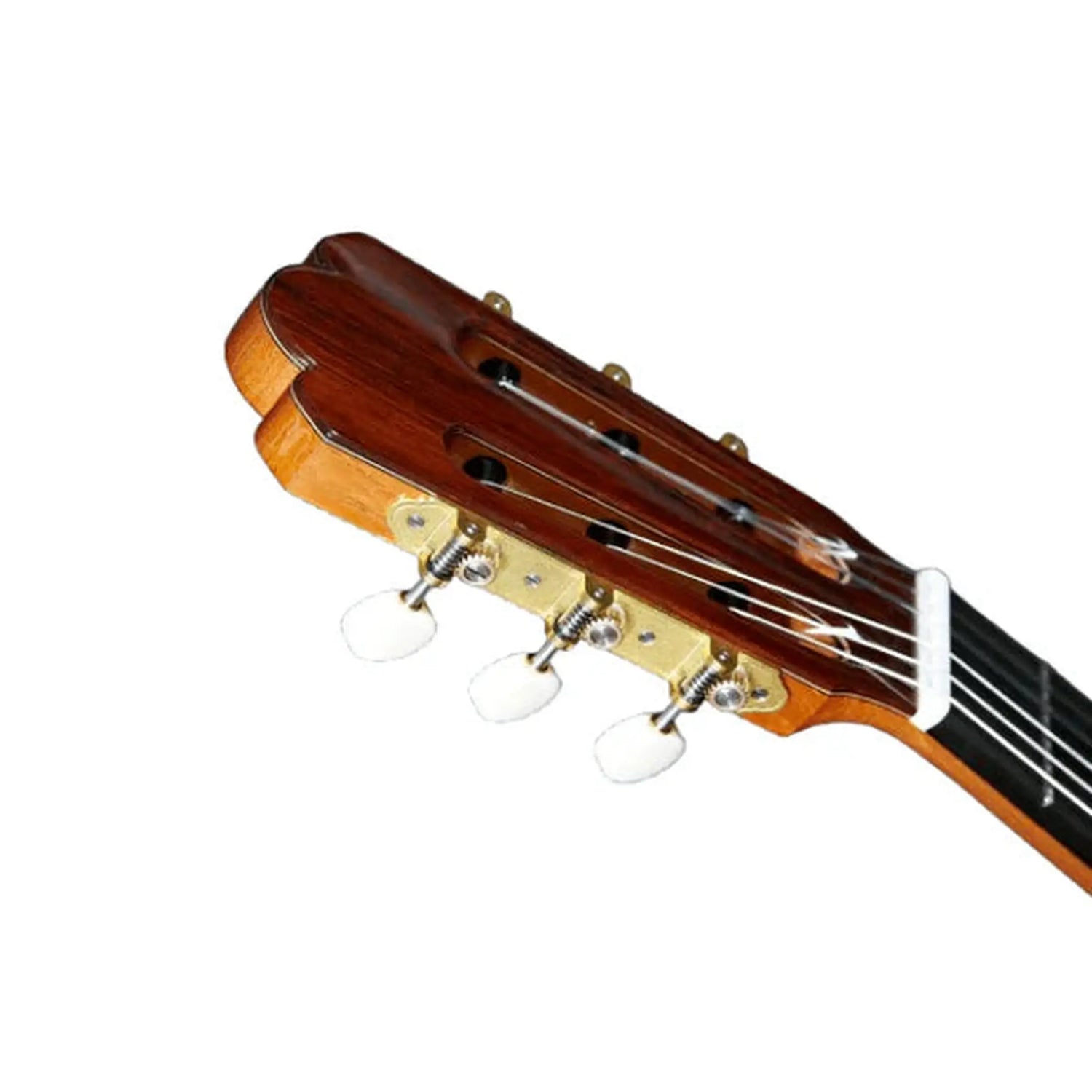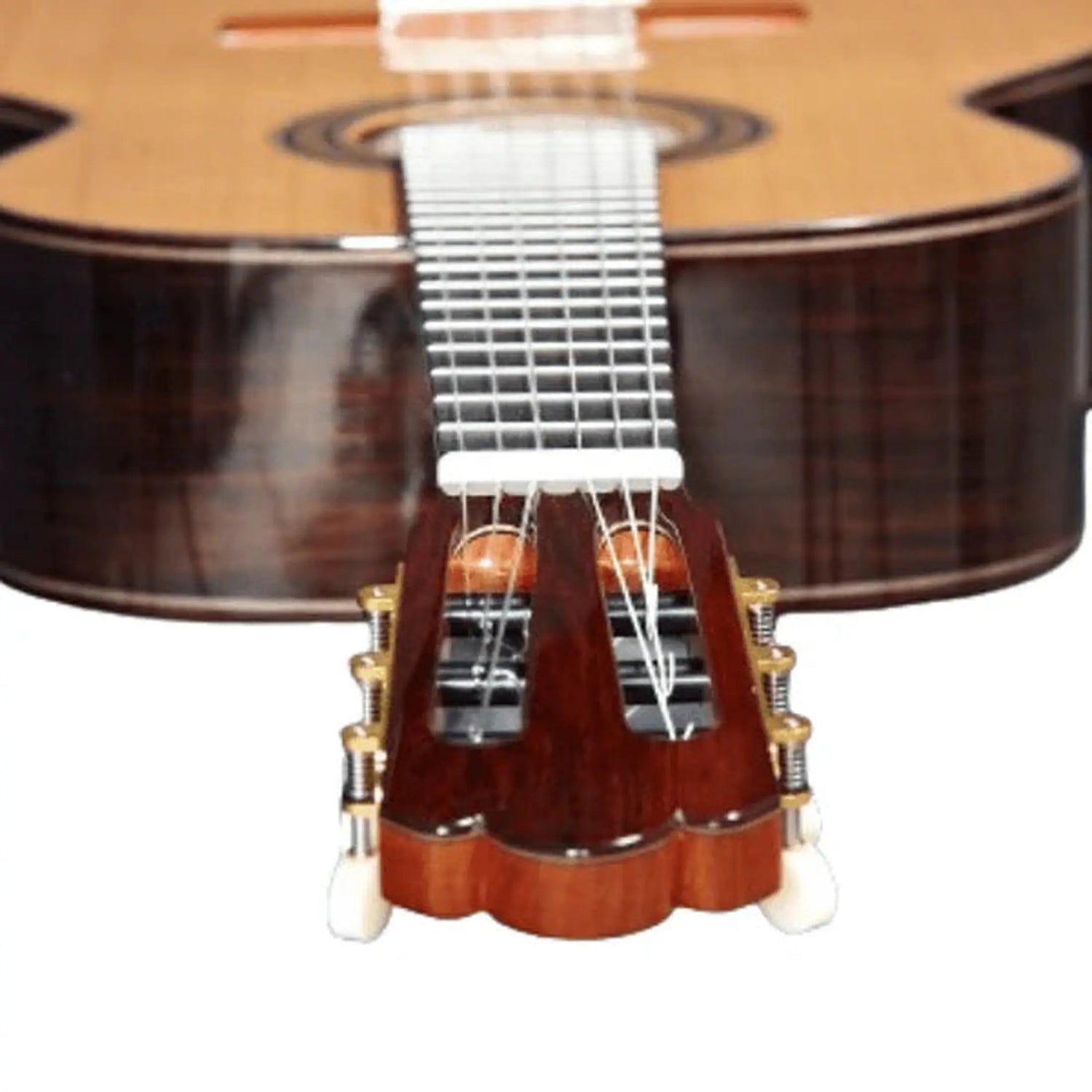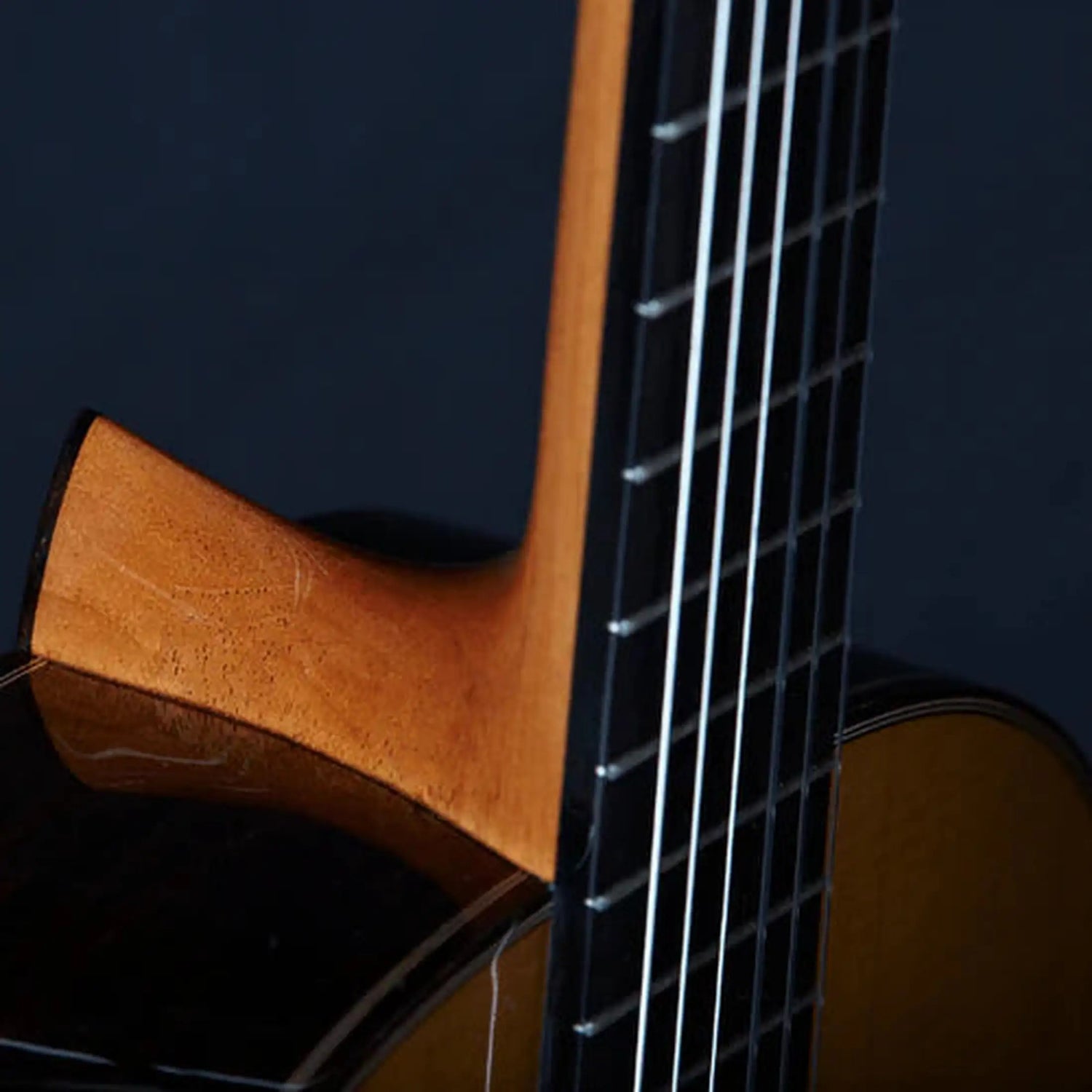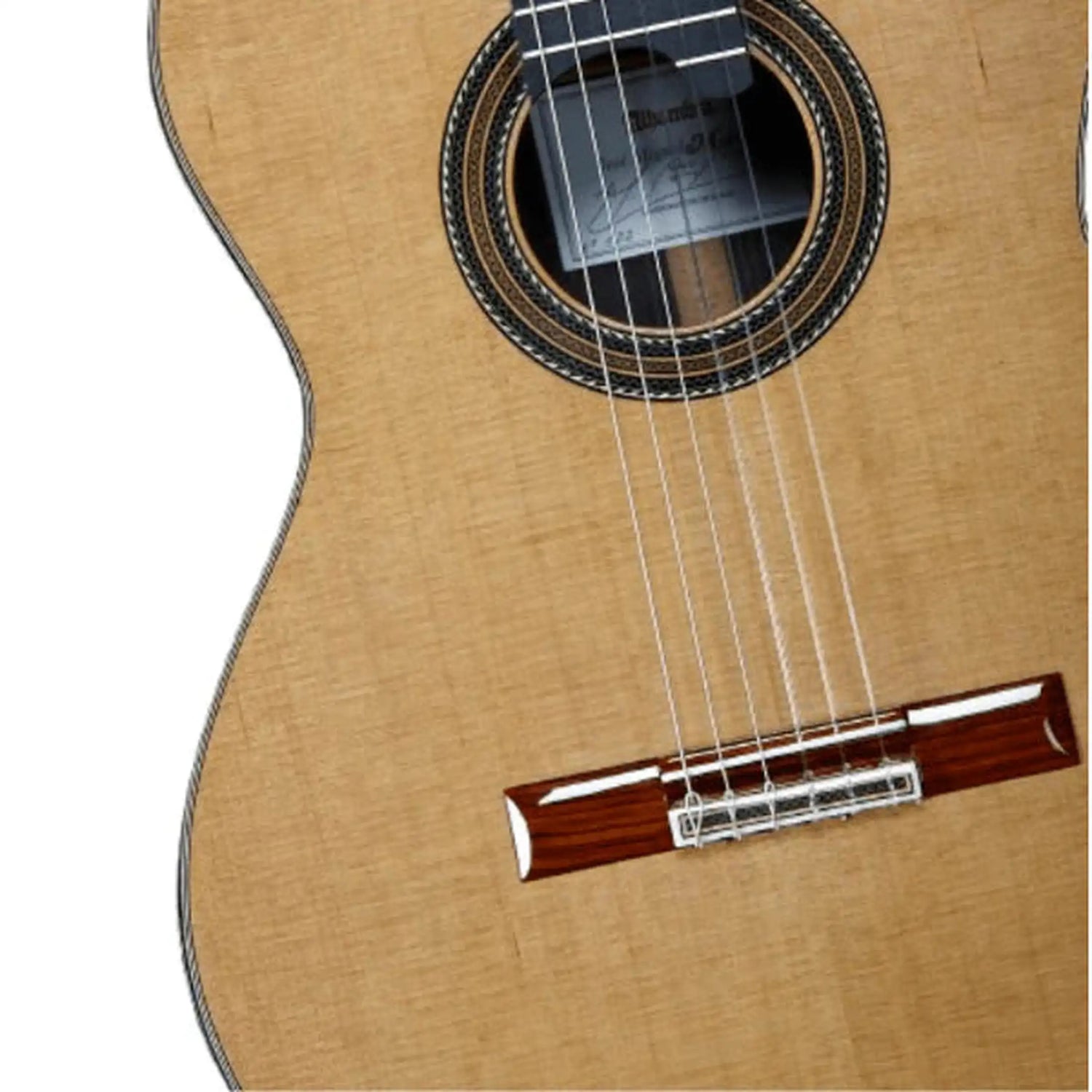Het massieve ceder bovenblad levert een krachtige en warme toon met veel definitie. De massief Indiaas palissander zij- en achterkant zorgen voor balans, sustain en draagkracht in grote zalen. De Franse politoer afwerking ondersteunt de klank en laat het instrument vrij ademen. Deze gitaar is in Spanje handgemaakt in samenwerking met José Miguel Moreno en wordt geleverd met een hoogwaardige BAM AB Tweed koffer.