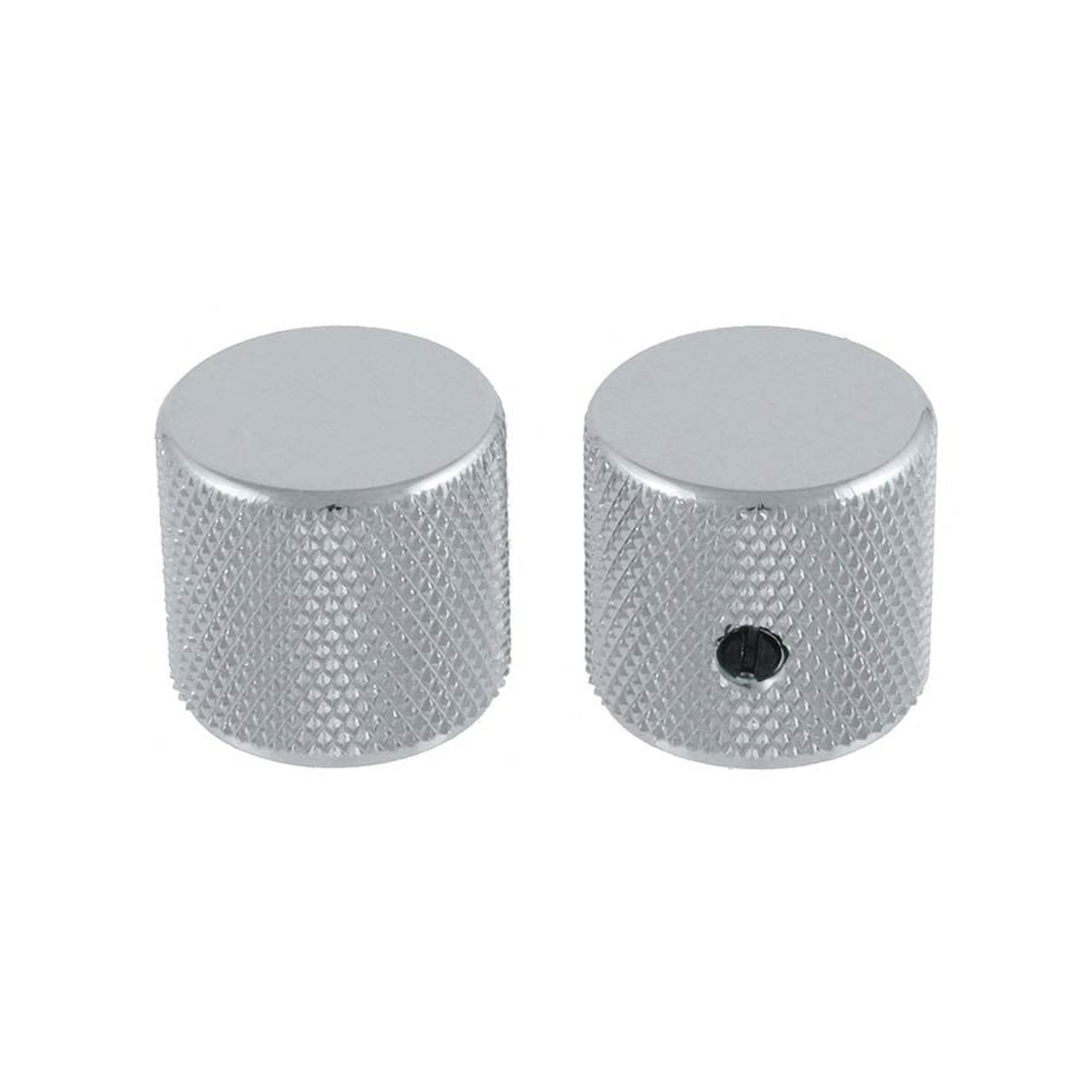 Allparts MK0115010 barrel knobs are perfect for musicians who combine style and functionality. This set of two chrome-colored knobs features a flat top and a set screw, and fits American solid-shaft potentiometers with a 3/4" x 3/4" size. Give your instrument a fresh look with these durable and stylish additions.