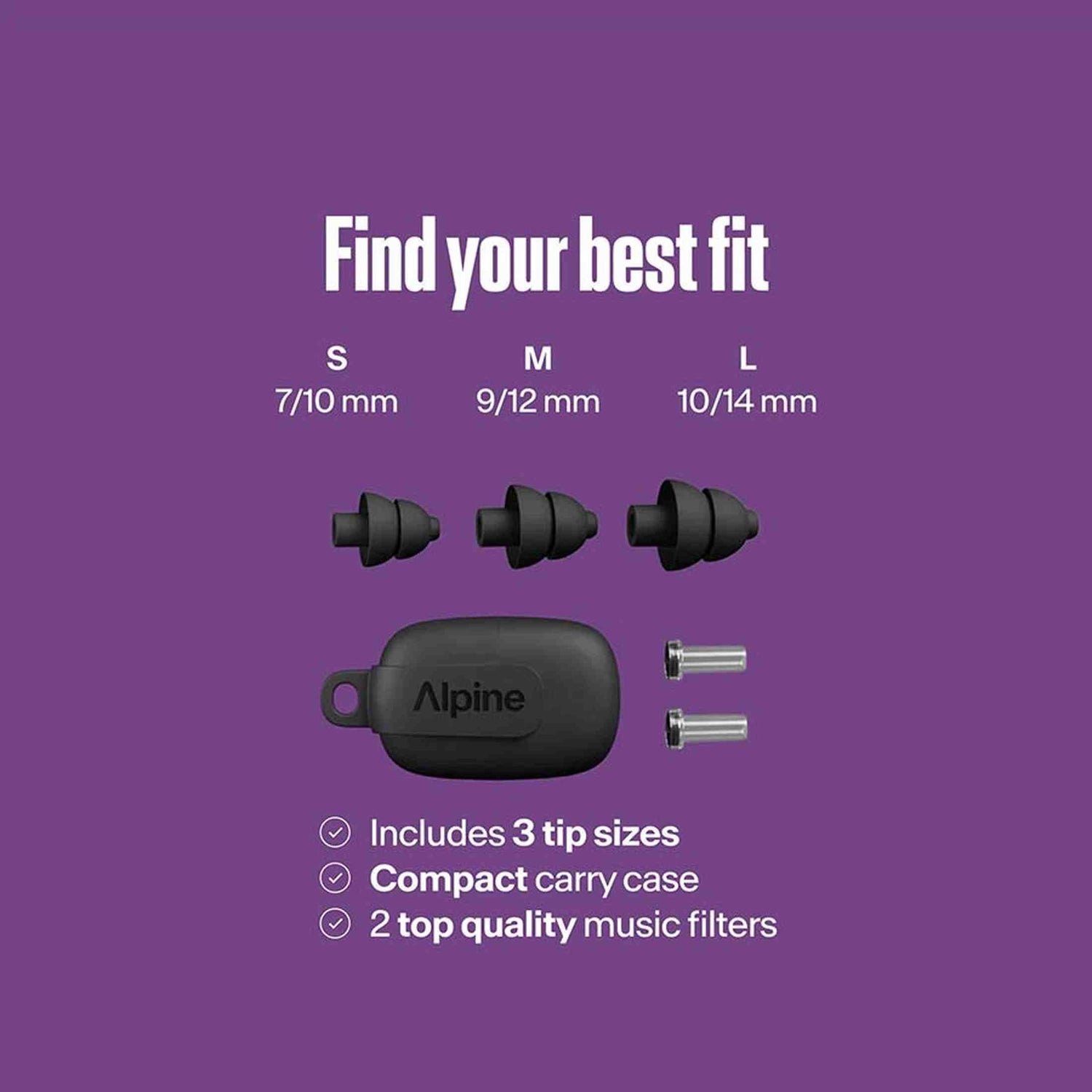 Alpine ALP-PP/PRO-BK PartyPlug Pro Earplugs Black with Music Filter and 3 Sizes