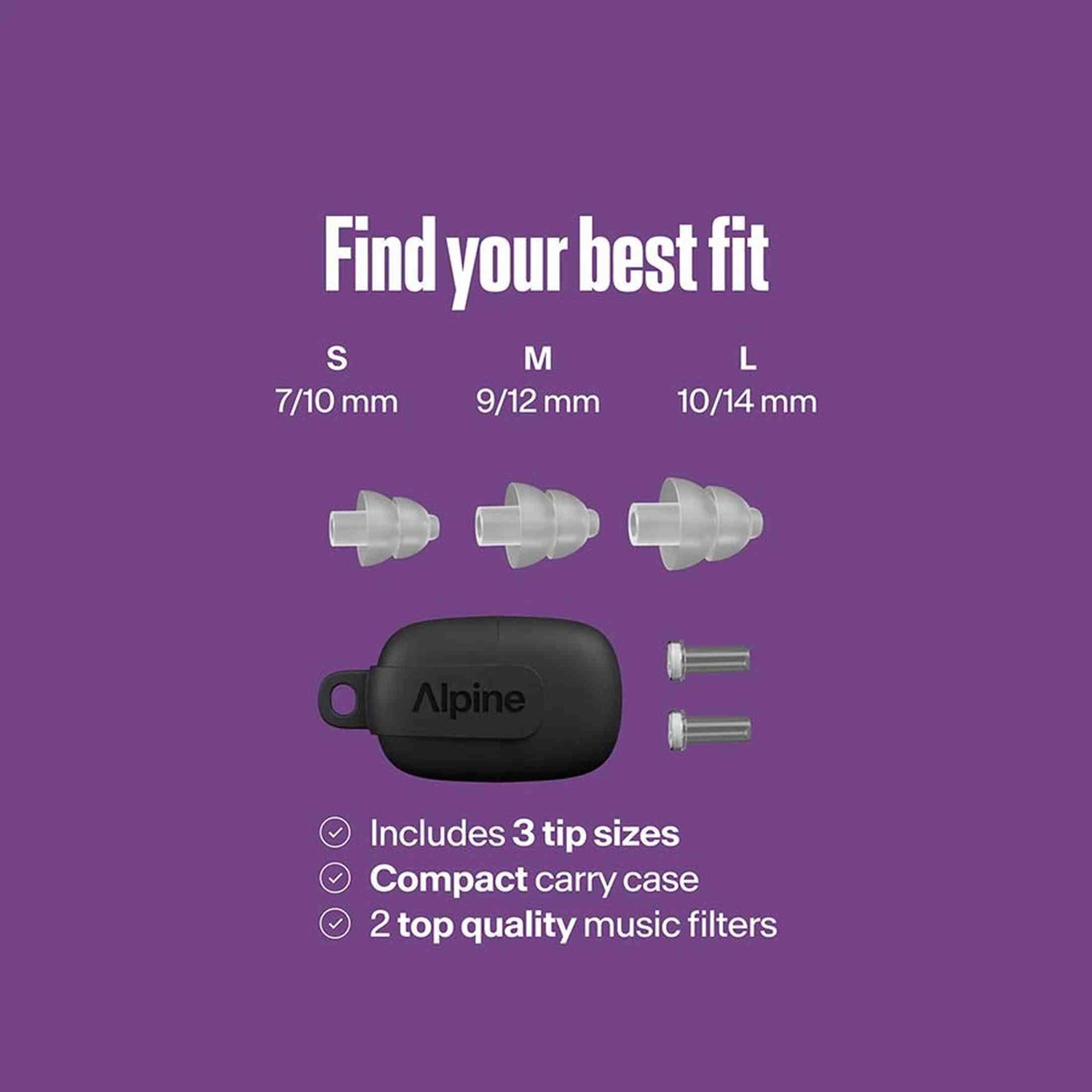The transparent design is less noticeable and sits securely thanks to the three included sizes. You can easily switch between S, M, and L for the best seal. The improved case protects the earplugs and is easy to carry in your pocket or bag. Suitable for intensive use during any event.