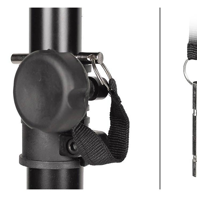 The tripod construction features rubber feet that provide extra grip and protect your floor. This set is sold as a pair, making it a practical choice for mobile DJs, bands, or PA systems requiring a similar setup on both sides of the stage.