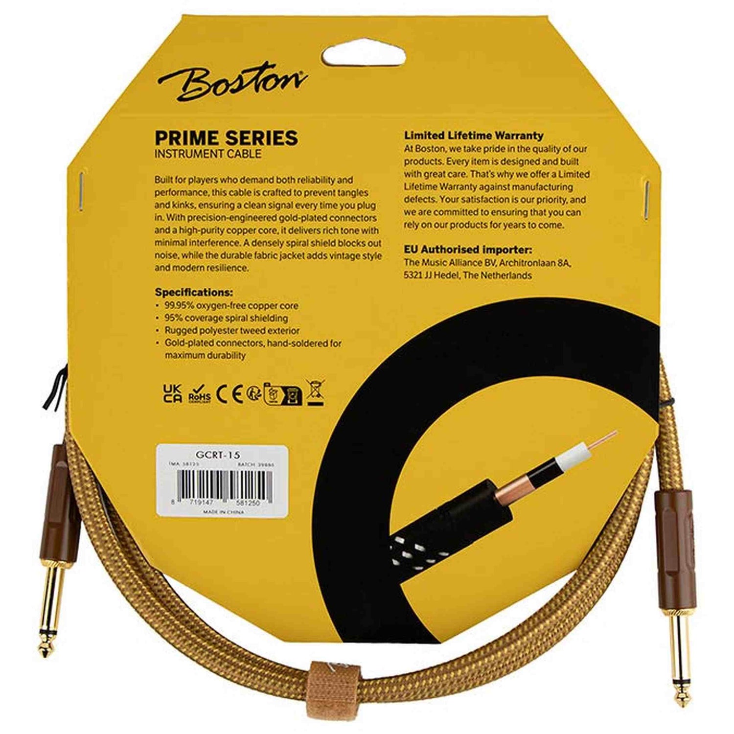 Boston GCRT-15 Prime Series woven jacket instrumentkabel jack-jack 1,5 meter yellow tweed