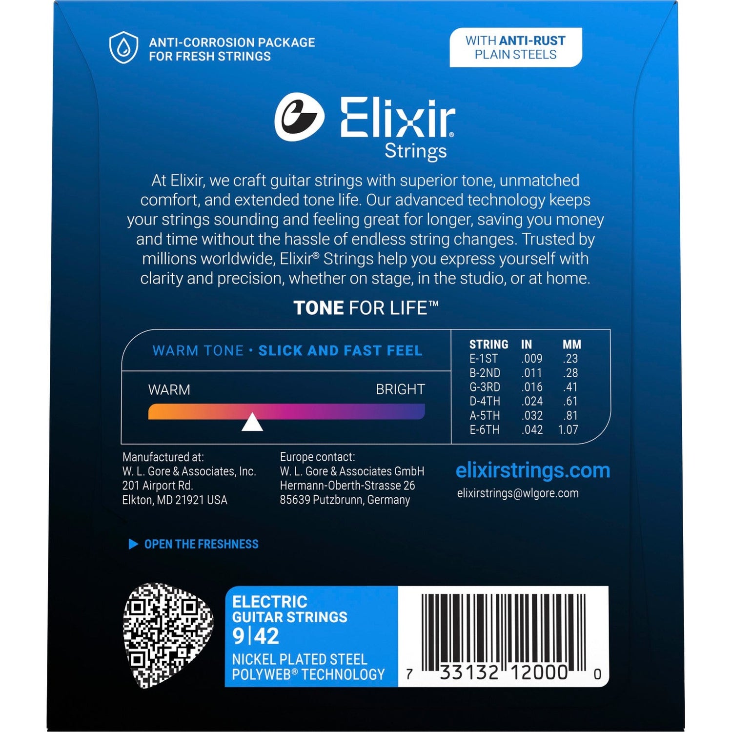 The Elixir 12000 is a set of electric guitar strings in Super Light (009-042), featuring the original POLYWEB® coating. This coating offers a warmer tone with a particularly smooth playing feel and reduces string noise when sliding. The full wrap around the string effectively keeps out dirt, ensuring a long-lasting, fresh tone and smooth playability.